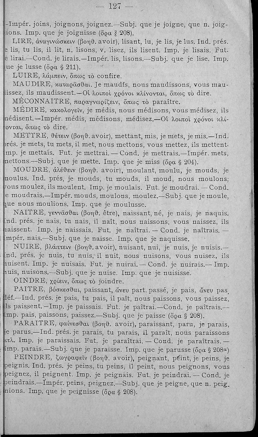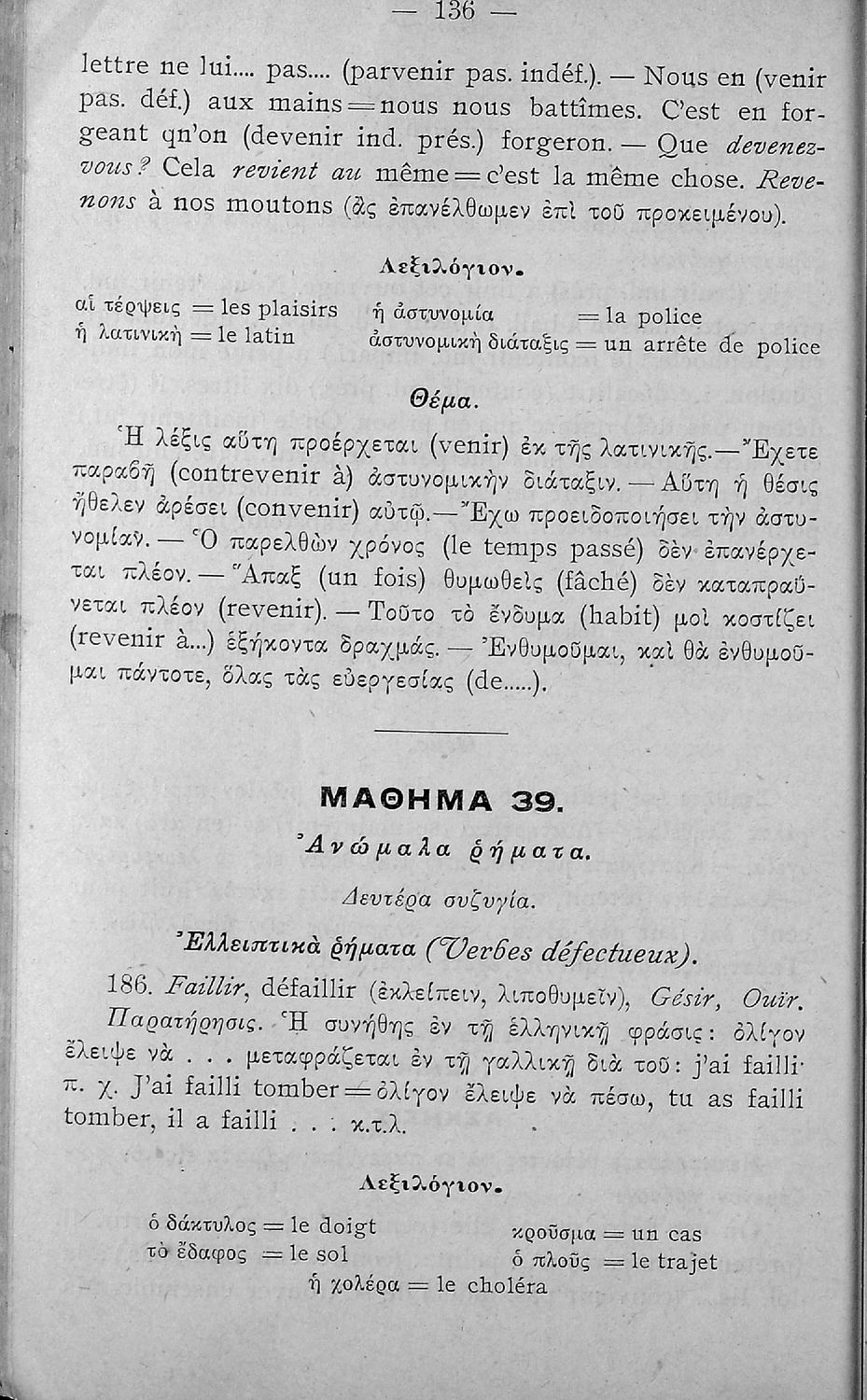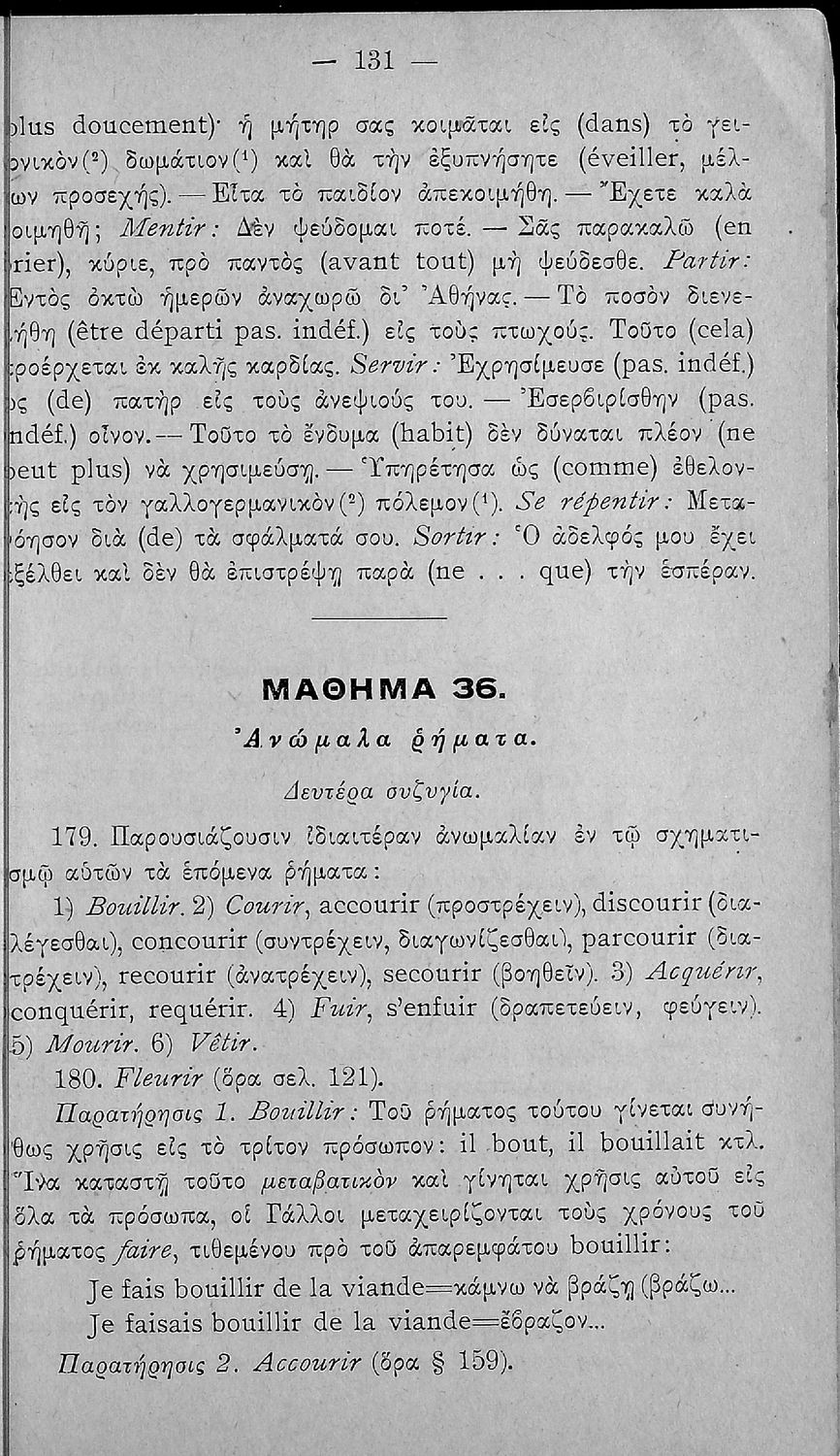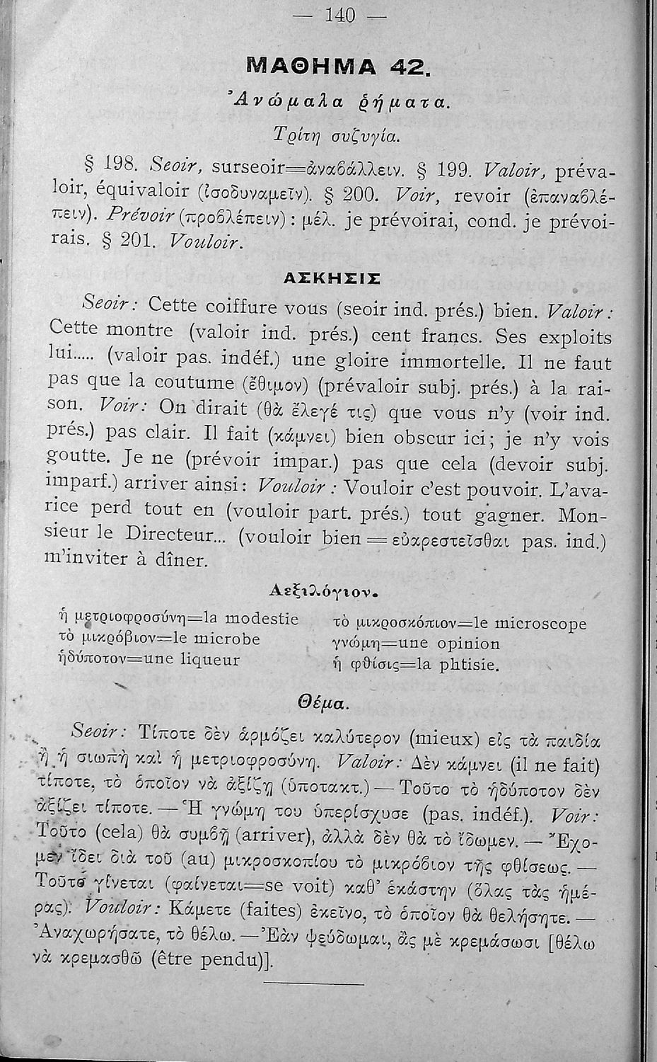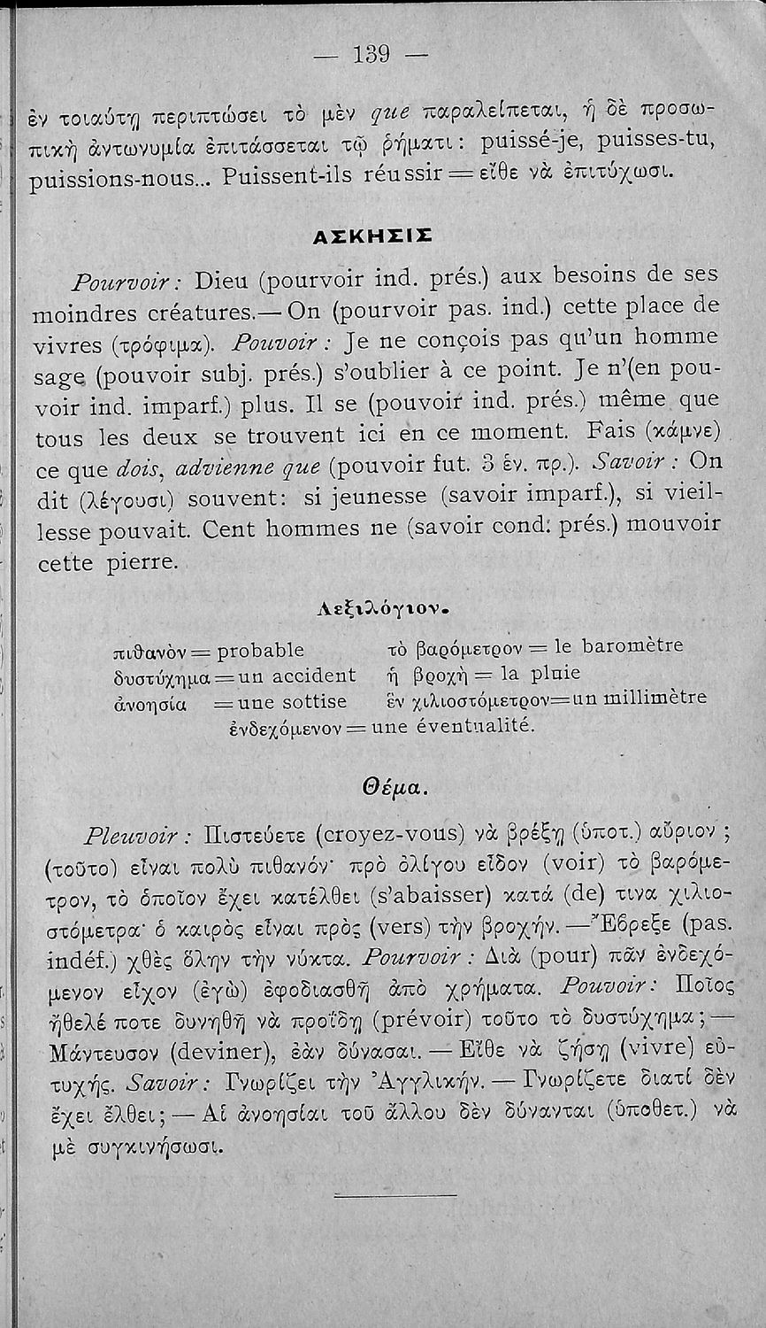Γραμματική της Γαλλικής γλώσσας για τα Τετρατάξια Γυμνάσια, τη Γ΄ τάξη των Αστικών Σχολείων των Θηλέων και τα Διδασκαλεία της Δημοτικής Εκπαίδευσης που περιλαμβάνει θεωρία, ασκήσεις και λεξιλόγιο.