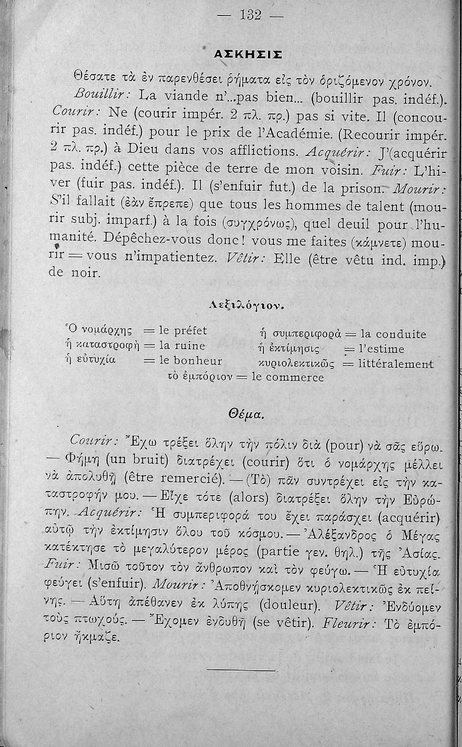 Σχολικό εγχειρίδιο Γαλλικών των Γυμνασίων, Αστικών Σχολείων θηλέων και Διδασκαλείων Δημοτικής Εκπαίδευσης. Κείμενα, ποιήματα, από εποχές και τον κοινωνικό και οικογενειακό βίο, τα οποία συνοδεύονται ασκήσεις ...