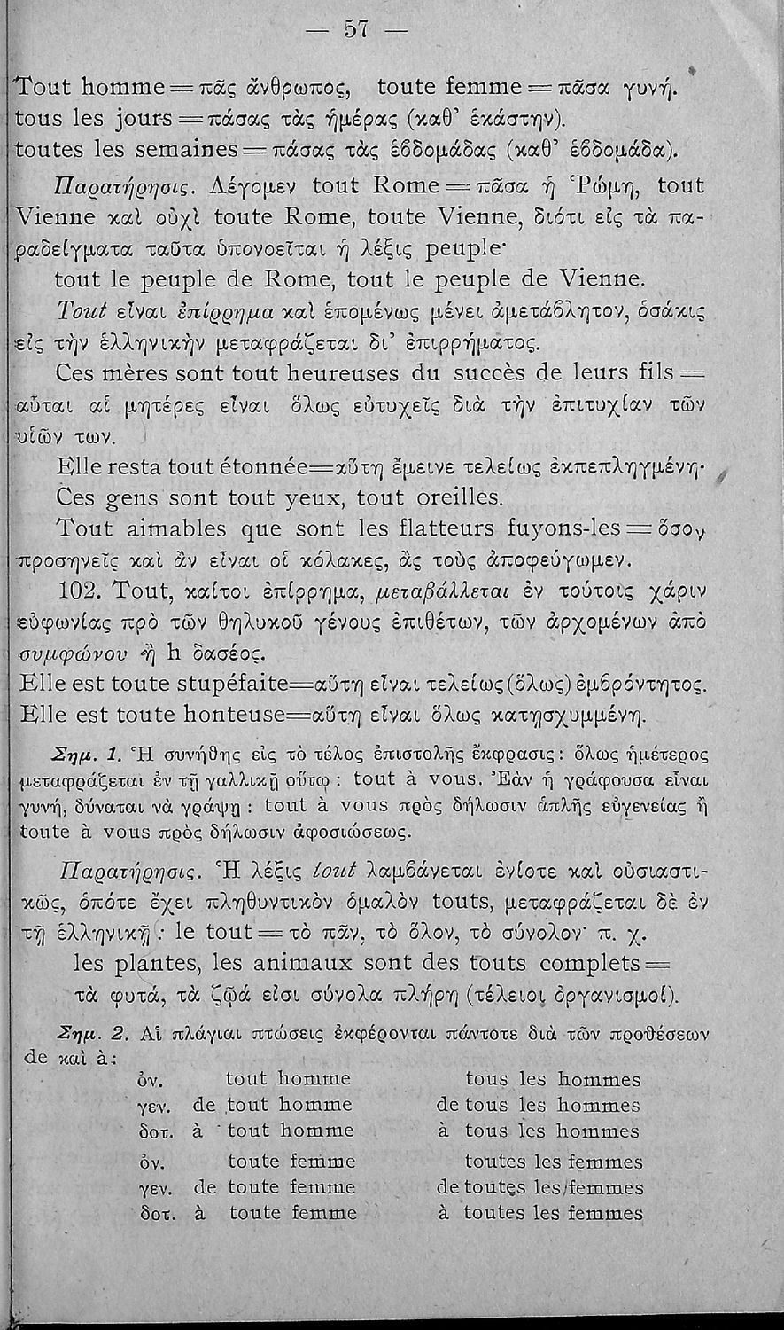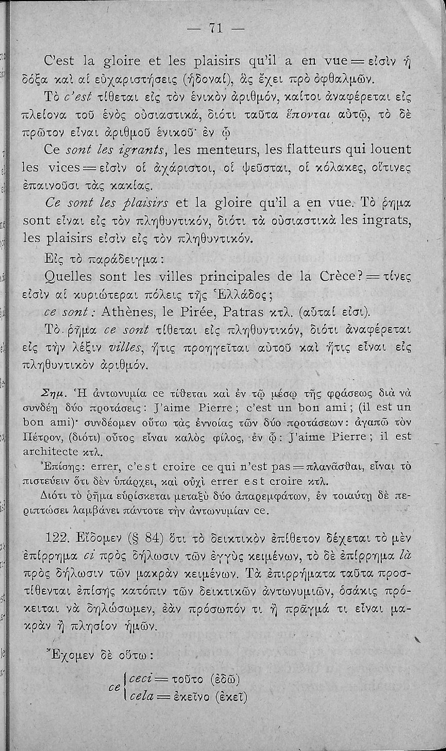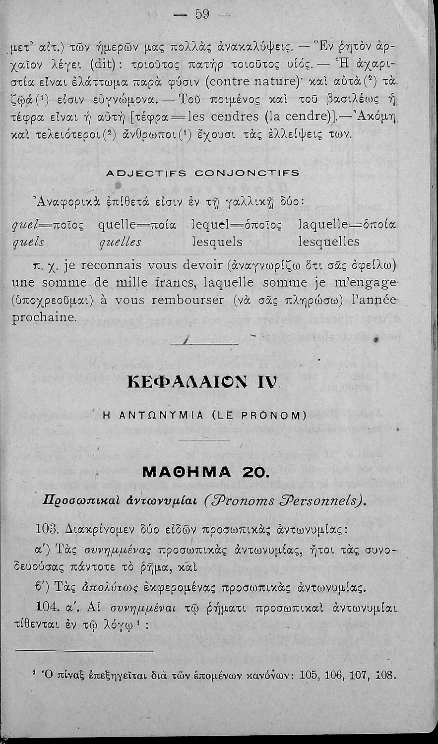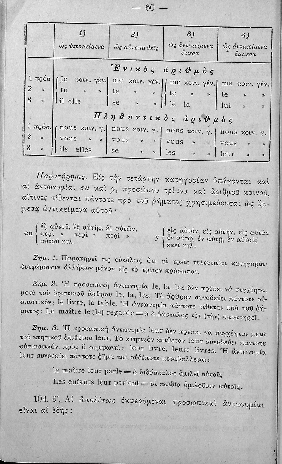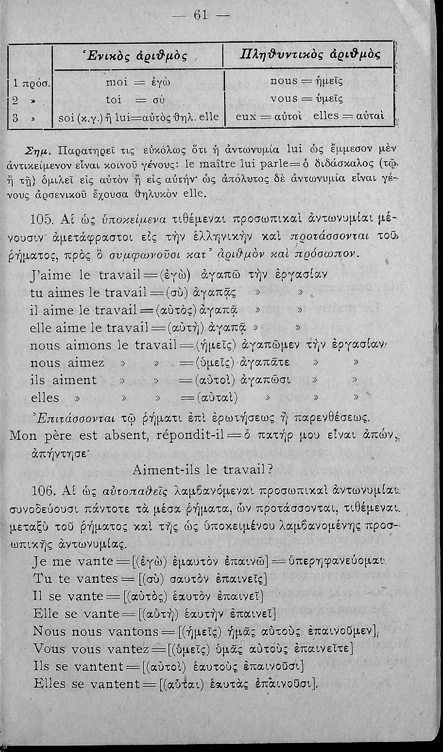 Γραμματική της Γαλλικής γλώσσας για τα Τετρατάξια Γυμνάσια, τη Γ΄ τάξη των Αστικών Σχολείων των Θηλέων και τα Διδασκαλεία της Δημοτικής Εκπαίδευσης που περιλαμβάνει θεωρία, ασκήσεις και λεξιλόγιο.