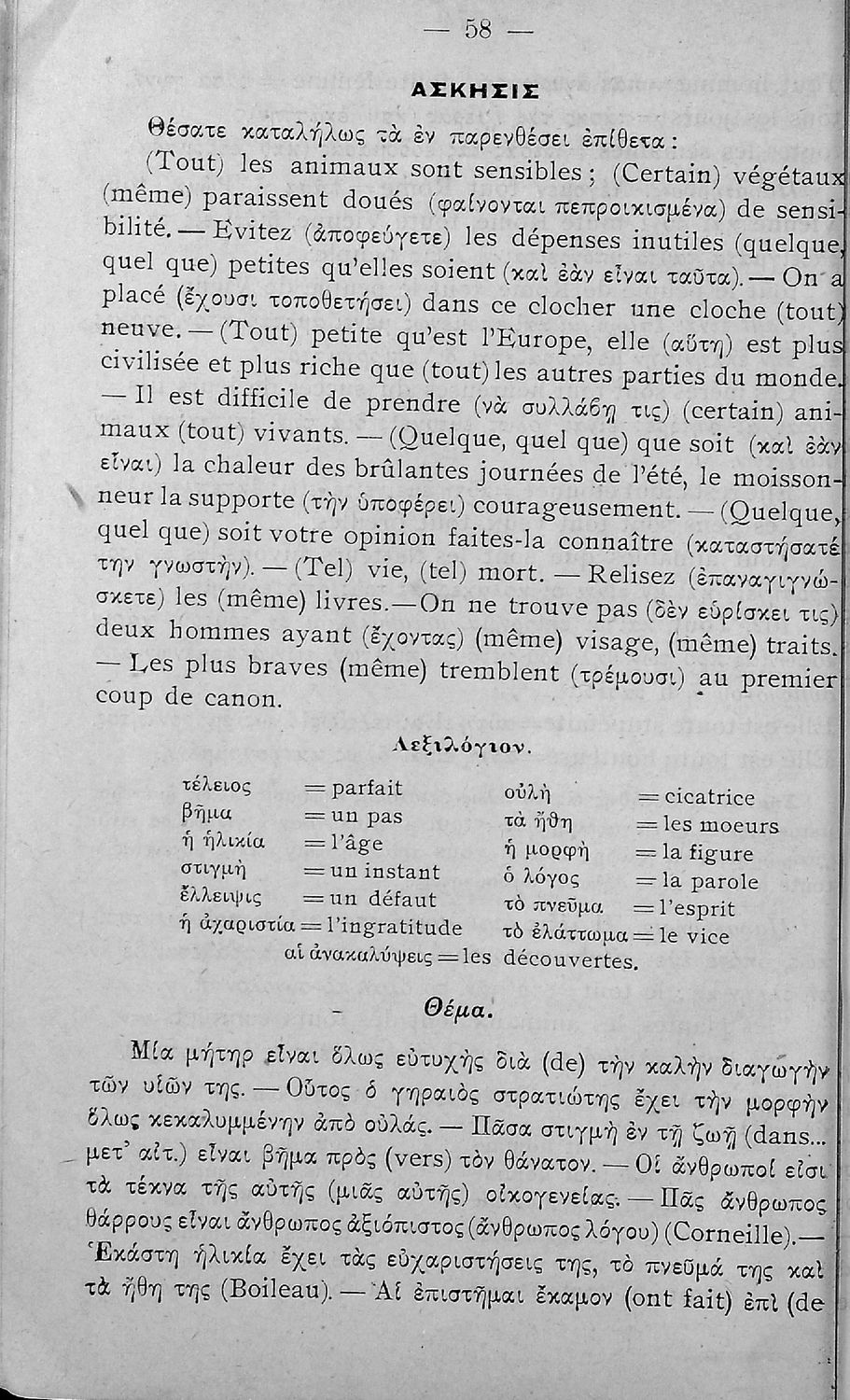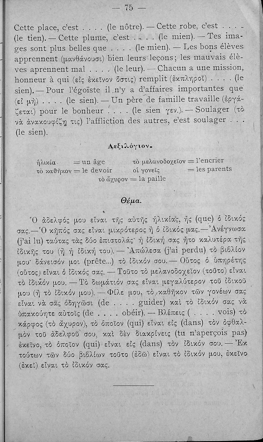 Σχολικό εγχειρίδιο Γαλλικών των Γυμνασίων, Αστικών Σχολείων θηλέων και Διδασκαλείων Δημοτικής Εκπαίδευσης. Κείμενα, ποιήματα, από εποχές και τον κοινωνικό και οικογενειακό βίο, τα οποία συνοδεύονται ασκήσεις ...