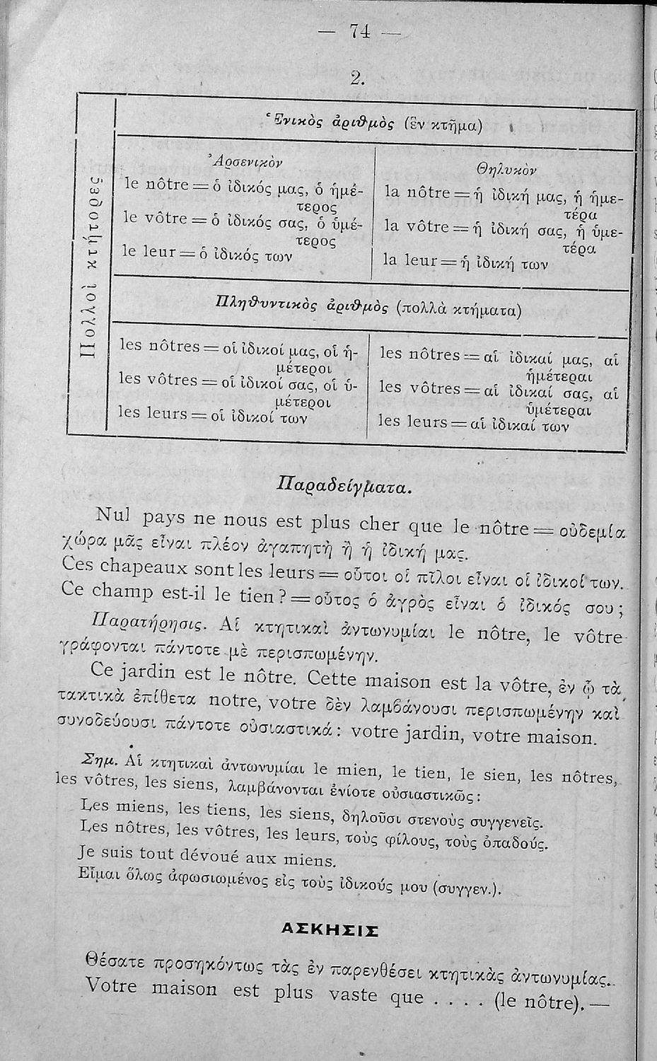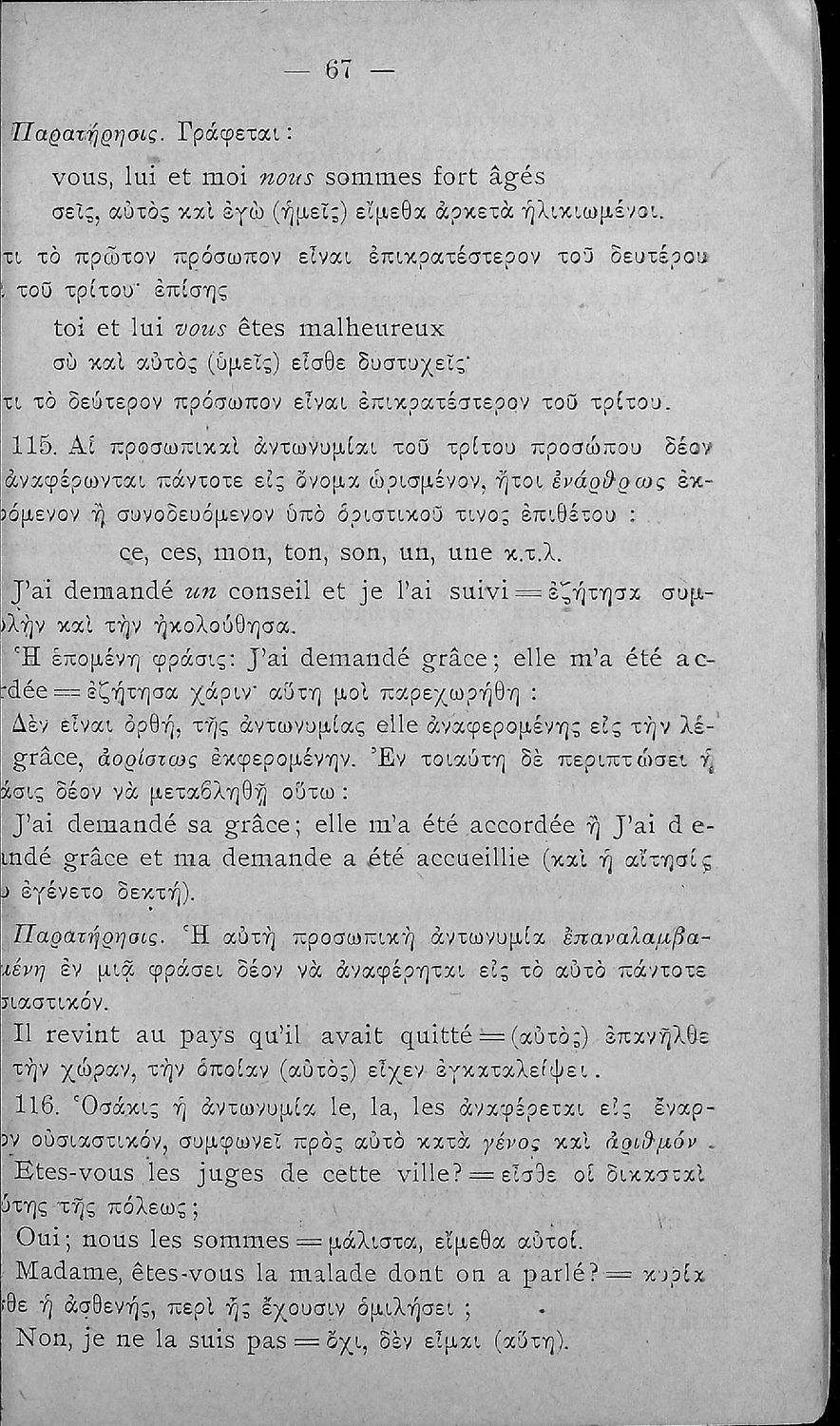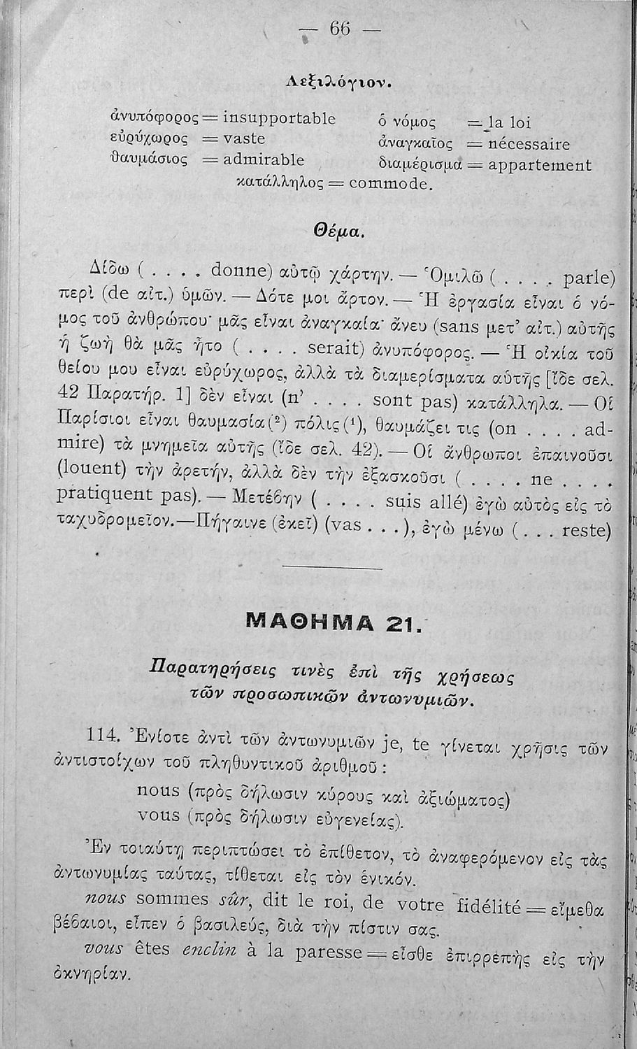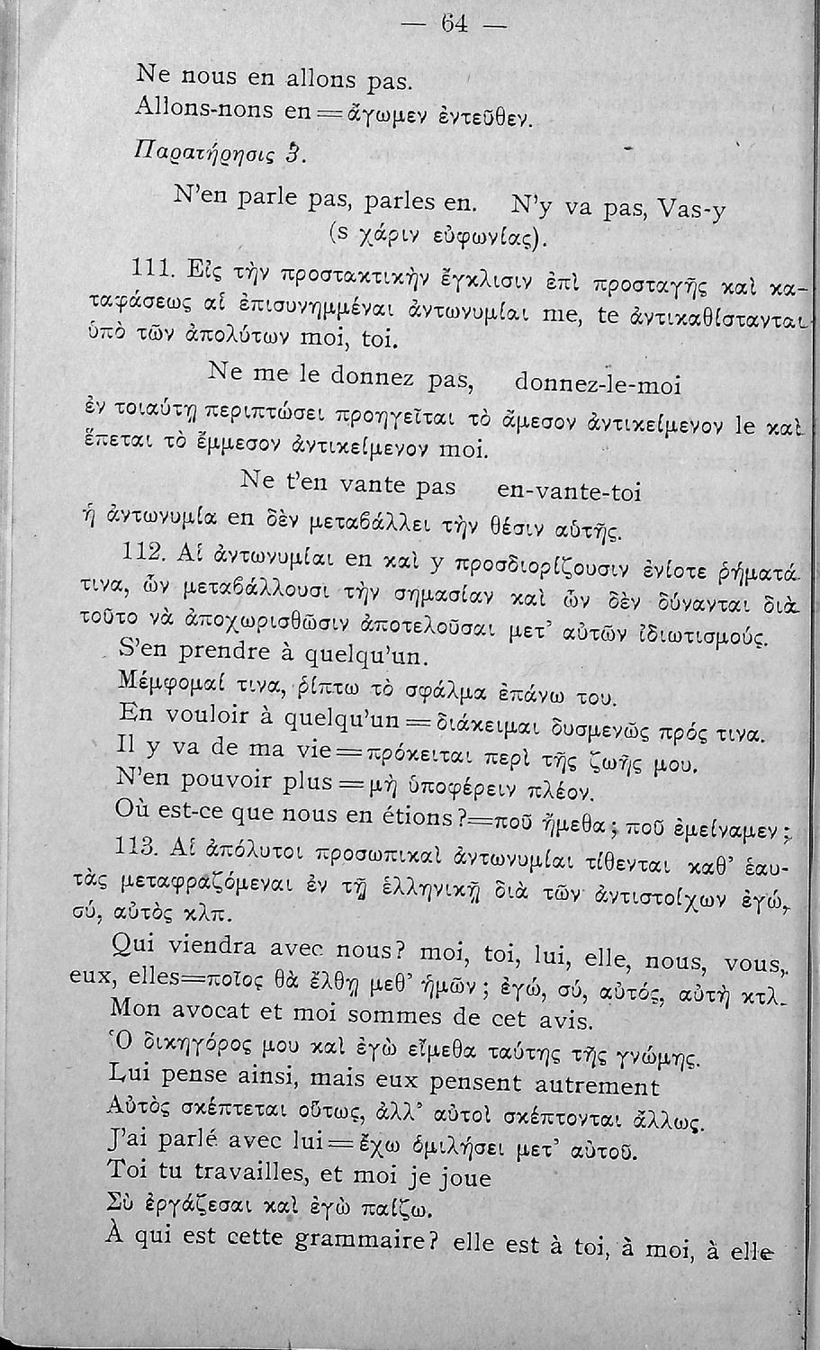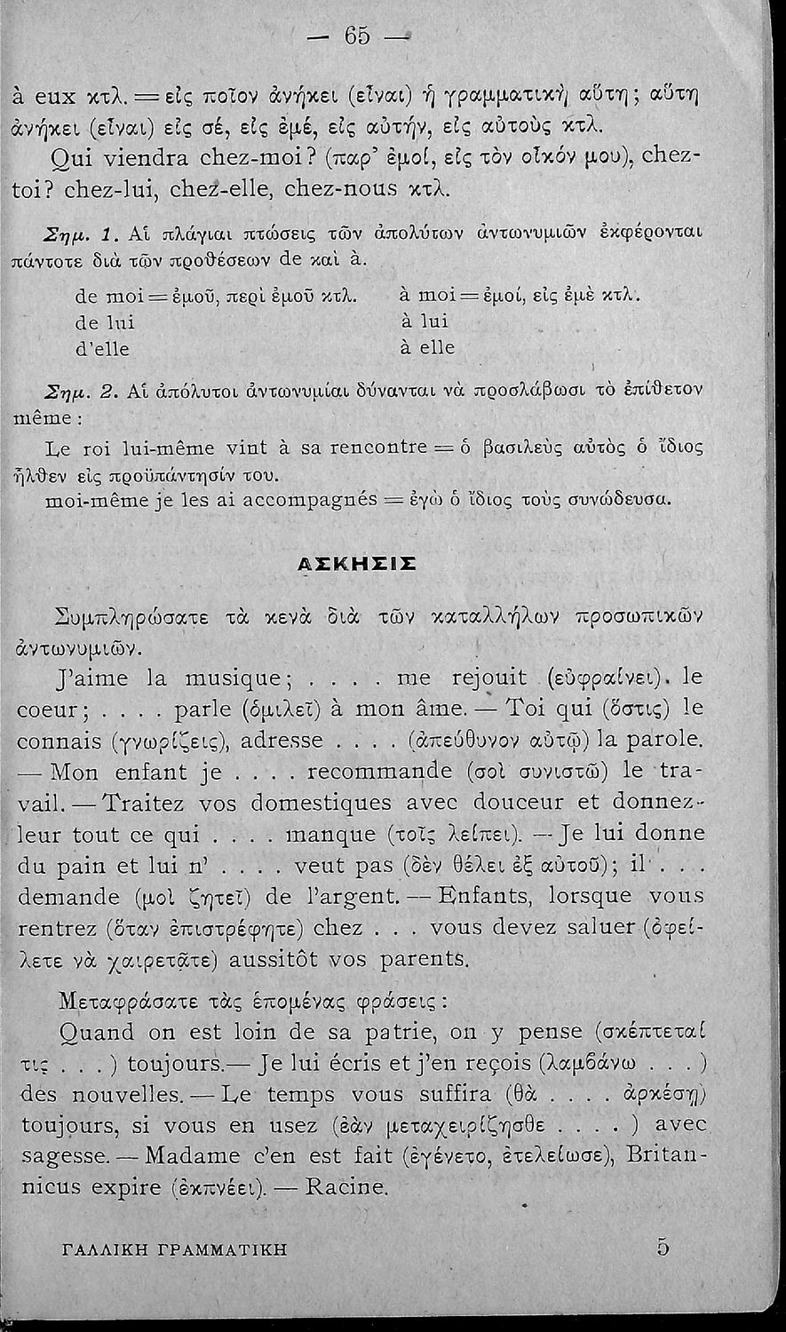 Γραμματική της γαλλικής γλώσσης δια τα Γυμνάσια το Βαρβάκειον Λύκειον και τας Εμπορικάς Σχολάς