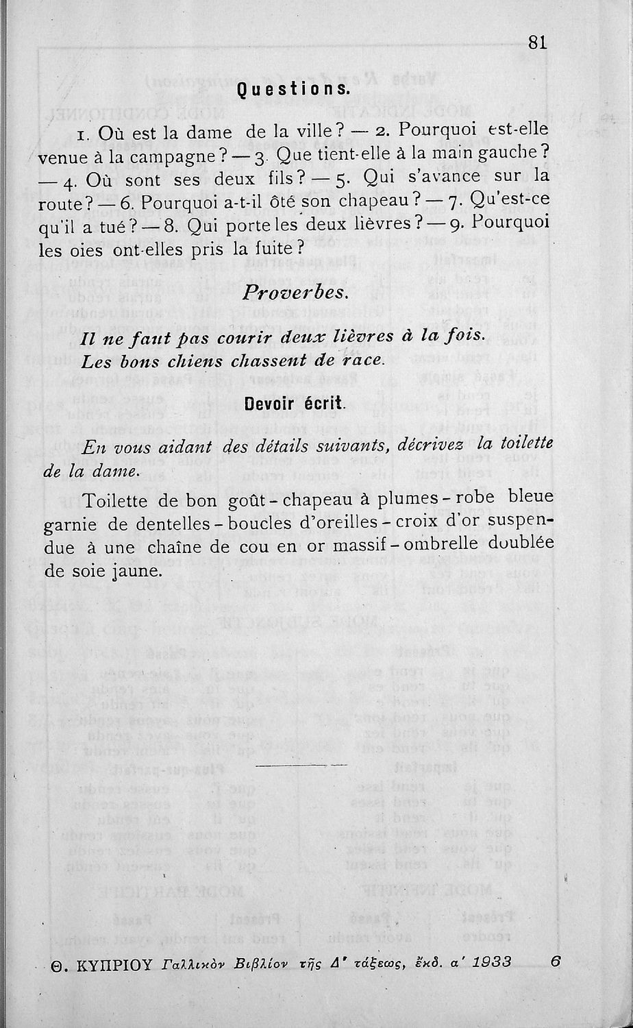 Τίτλος: Γαλλικόν βιβλίον της Δ΄ τάξεως δια την Δ΄ τάξιν των Εξαταξίων Γυμνασίων και τας αντιστοίχους τάξεις των λοιπών σχολείων της Μέσης Εκπαιδεύσεως