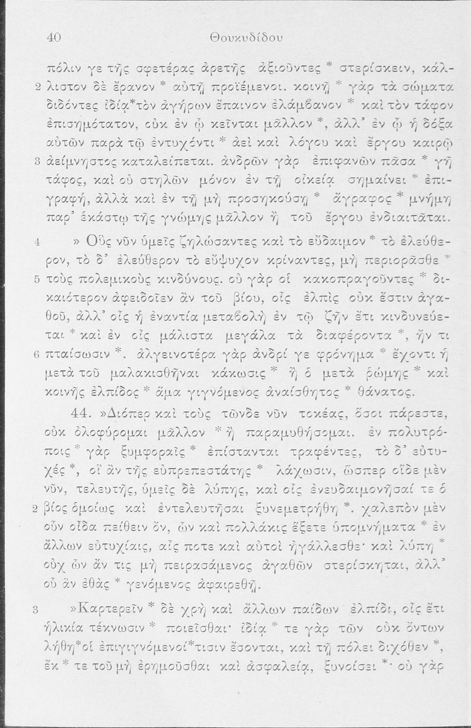 Σχολικό εγχειρίδιο Αρχαίων Ελληνικών Δ΄, Ε΄ και ΣΤ΄ Γυμνασίου που περιέχει αποσπάσματα από το έργο του Θουκυδίδη Ιστορία, ερμηνευτικά και πραγματολογικά σχόλια, και γραμματικές παρατηρήσεις του συγγραφέα.