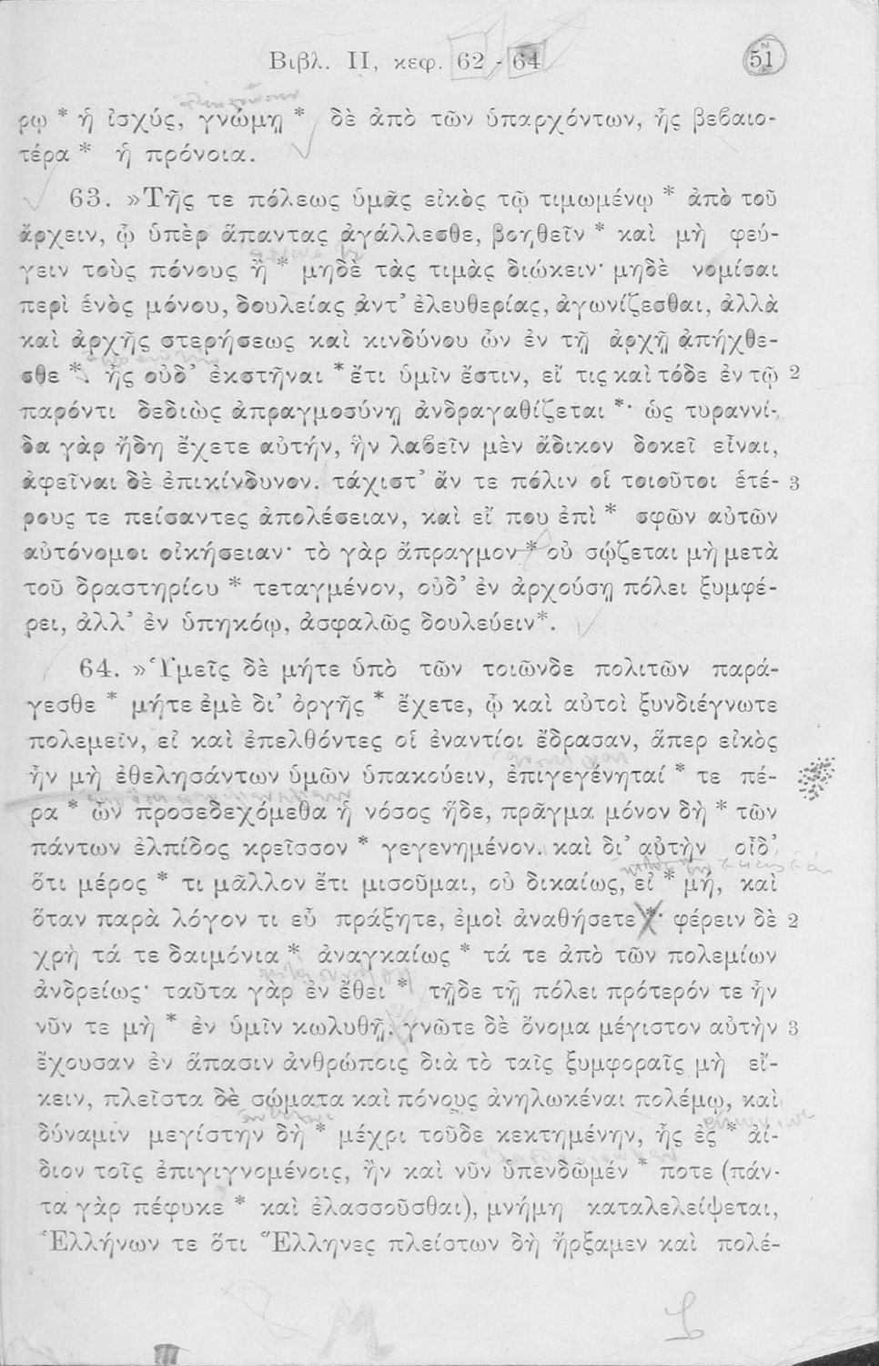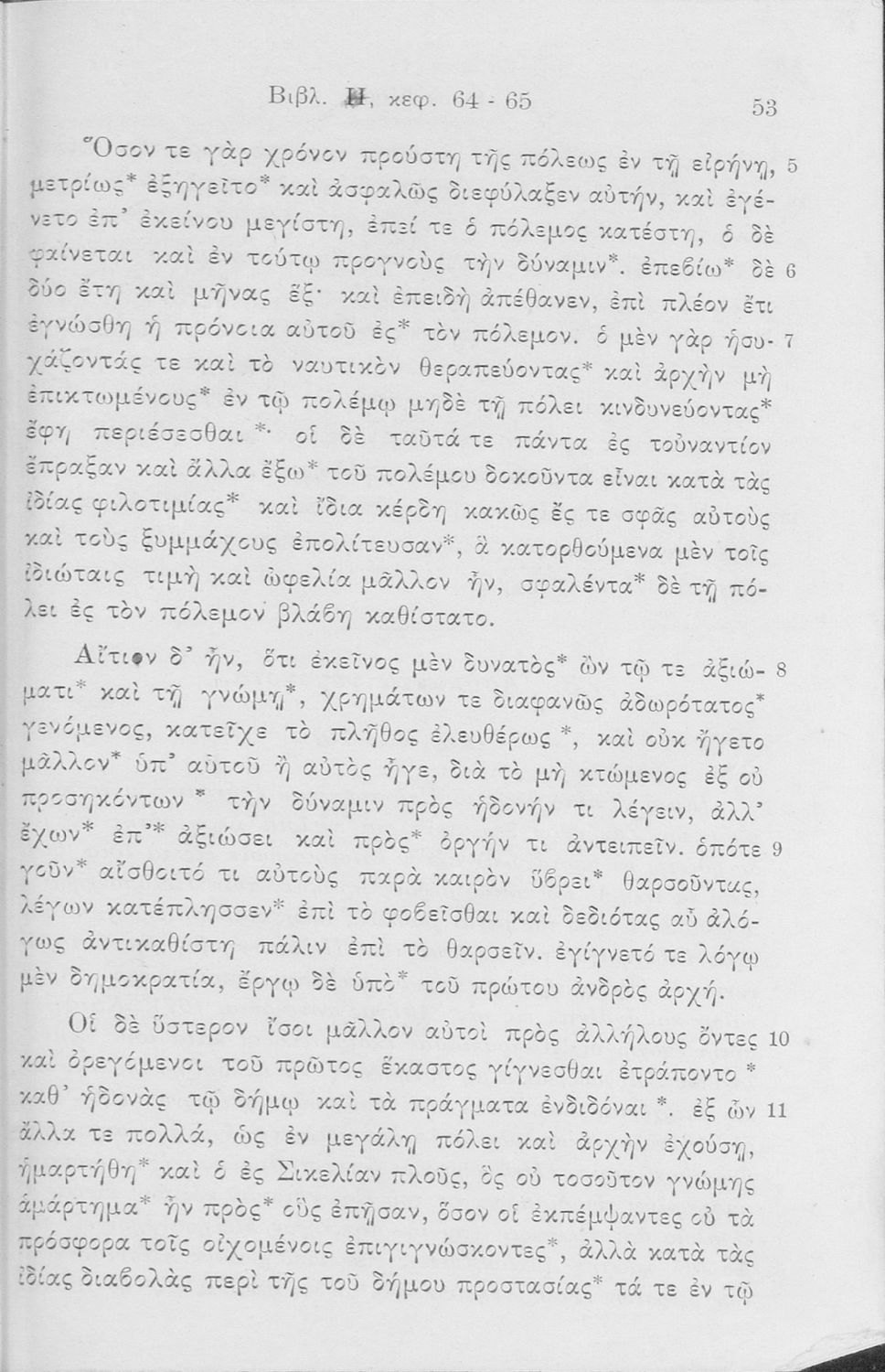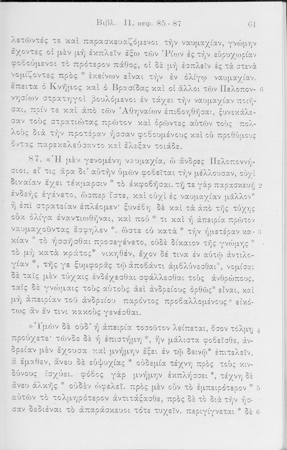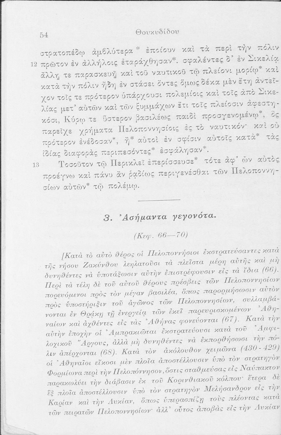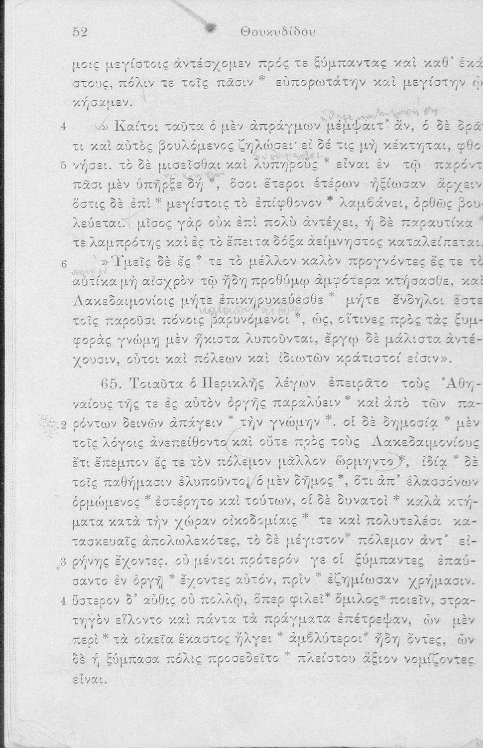 Σχολικό εγχειρίδιο Αρχαίων Ελληνικών Δ΄, Ε΄ και ΣΤ΄ Γυμνασίου που περιέχει αποσπάσματα από το έργο του Θουκυδίδη Ιστορία, ερμηνευτικά και πραγματολογικά σχόλια, και γραμματικές παρατηρήσεις.