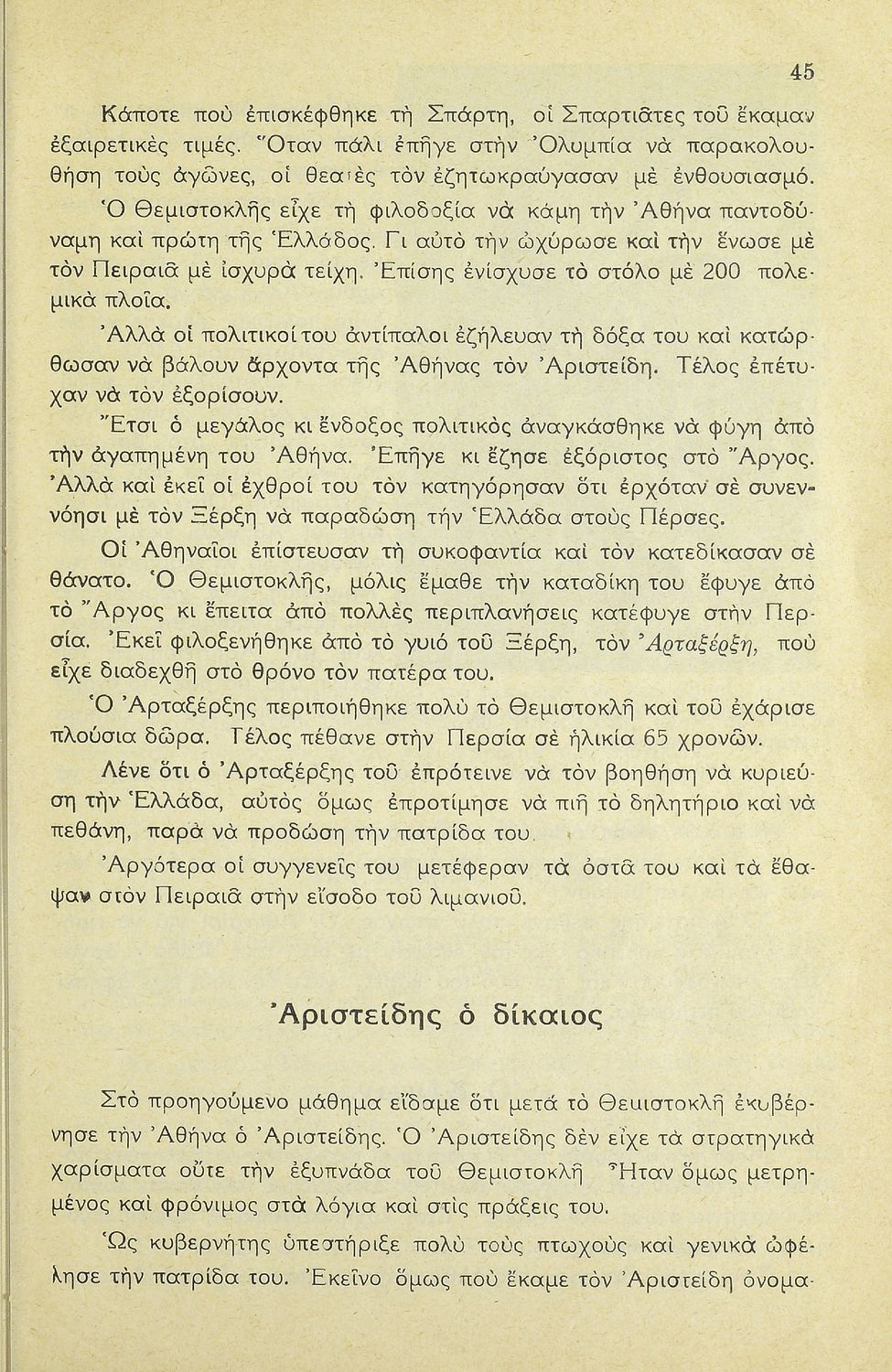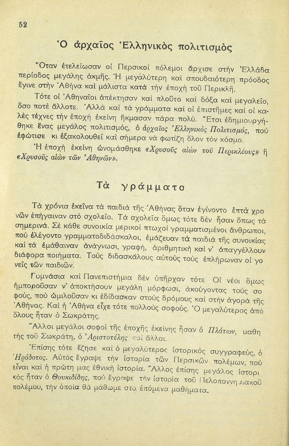 Σχολικό εγχειρίδιο Ιστορίας για τις Γ΄ και Δ΄ Δημοτικού και Παρθεναγωγείου που καλύπτει το διάστημα από τους προϊστορικούς χρόνους ως την κατάληψη της Ελλάδας από τους Ρωμαίους.