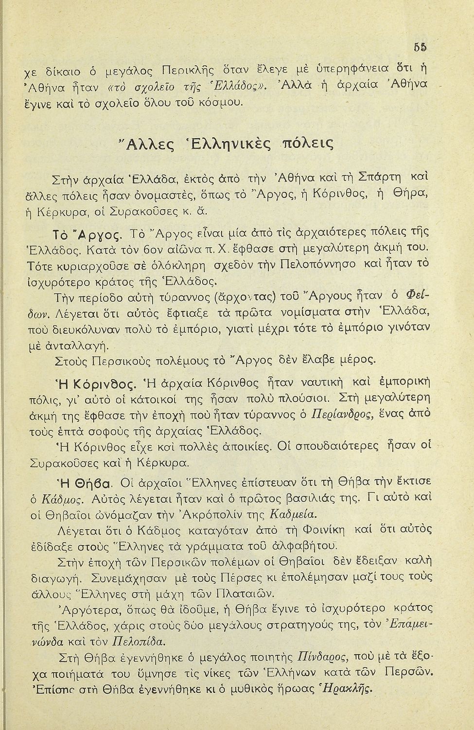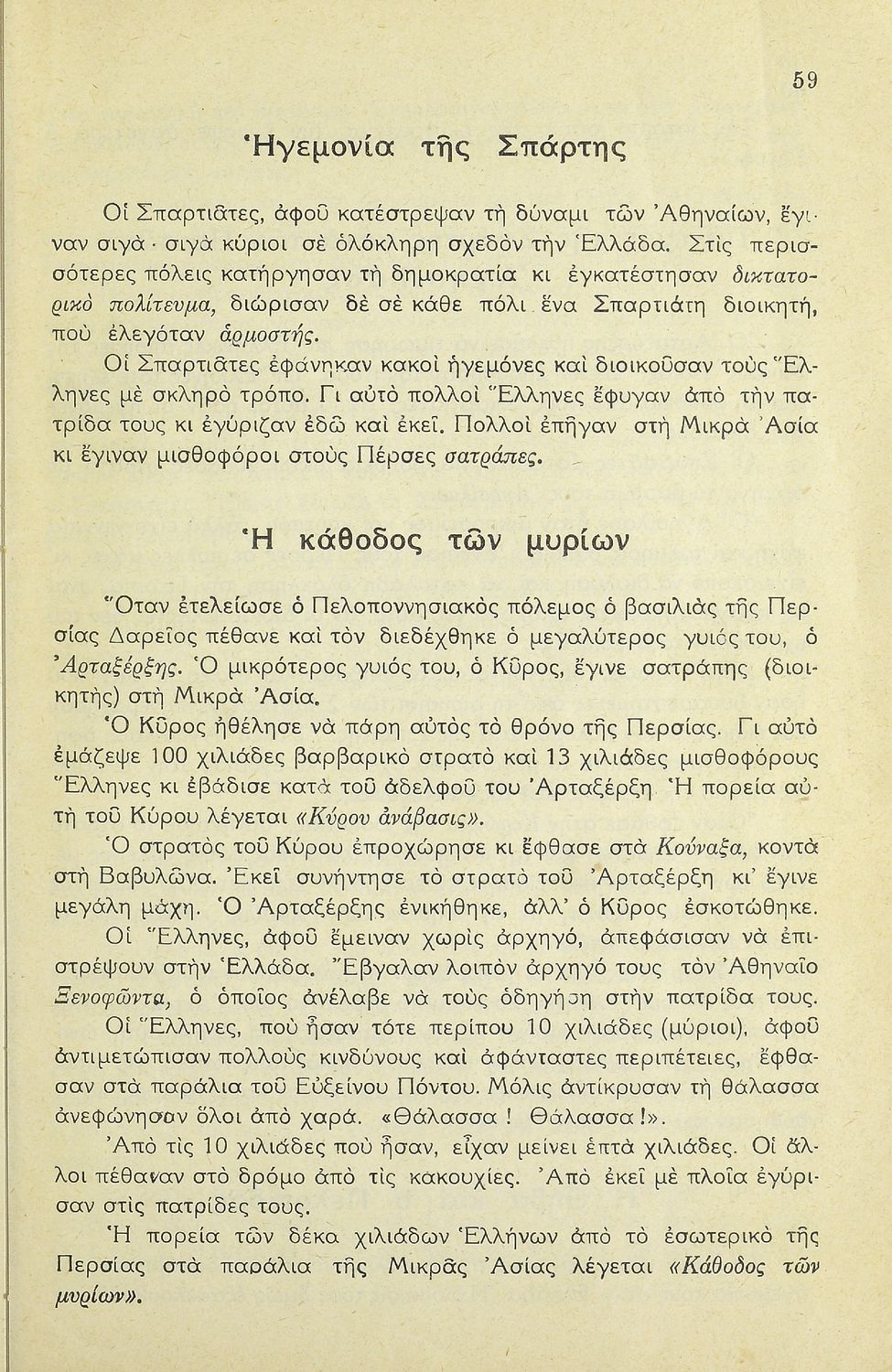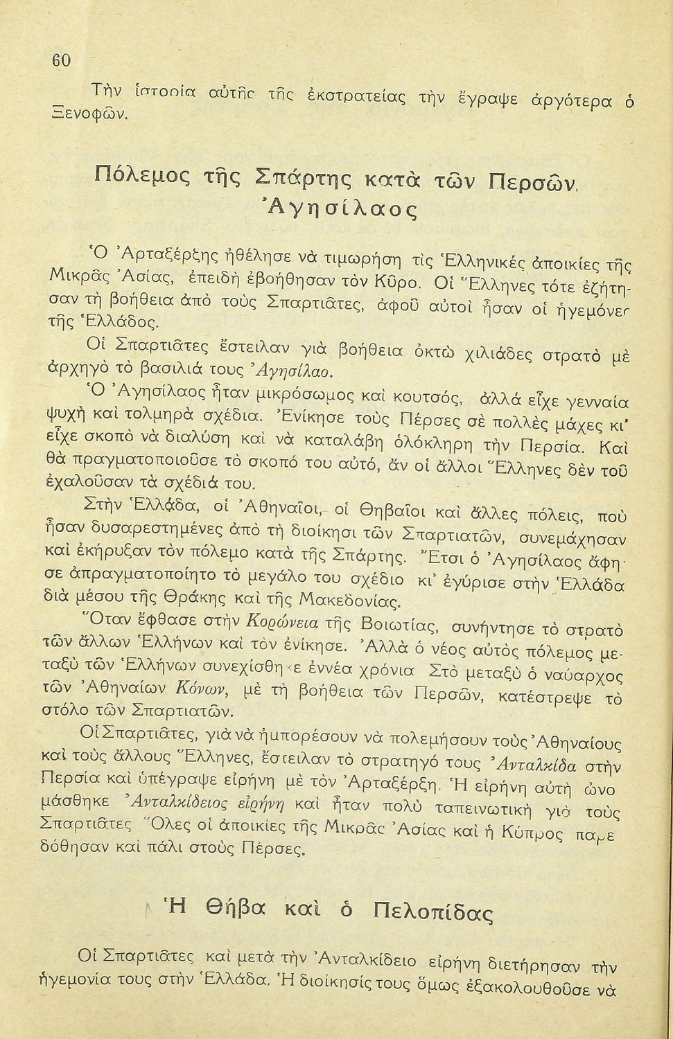 Μαθητικό βοήθημα Ιστορίας. Γ΄ και Δ΄ Δημοτικού Παρθεναγωγείου που καλύπτει το διάστημα από τους προϊστορικούς χρόνους ως τη μάχη της Μαντίνειας