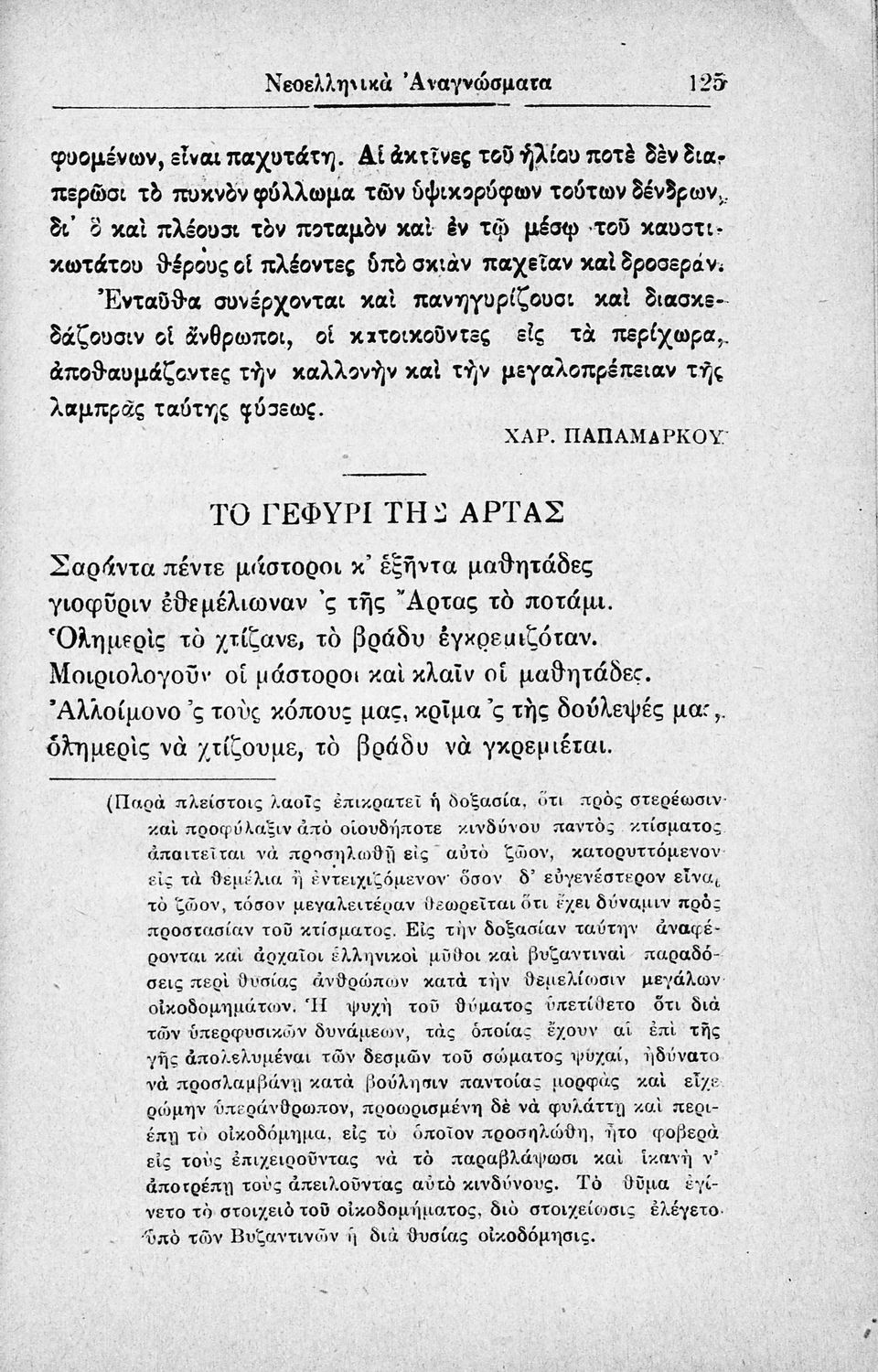 Σχολικό εγχειρίδιο Νέων Ελληνικών Δ΄ Γυμνασίου και Β΄ Αστικού Σχολείου που περιέχει πεζά και ποιήματα Ελλήνων συγγραφέων εμπνευσμένα από τη θρησκευτική και κοινωνική ζωή, την ελληνική μυθολογία, την αρχαία και