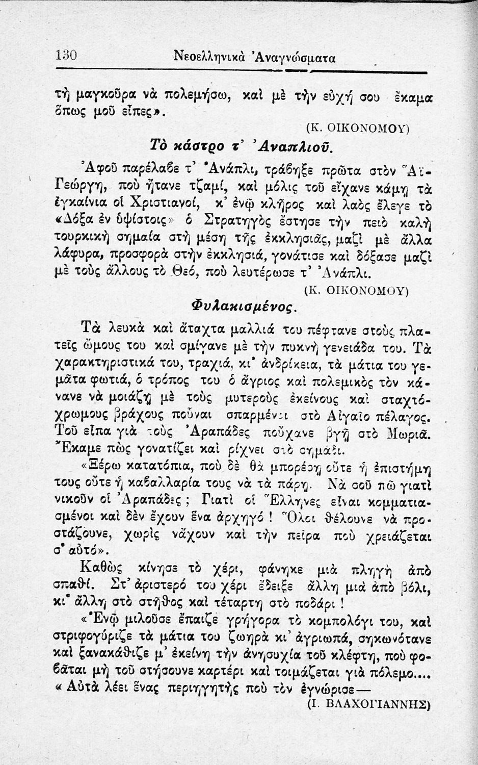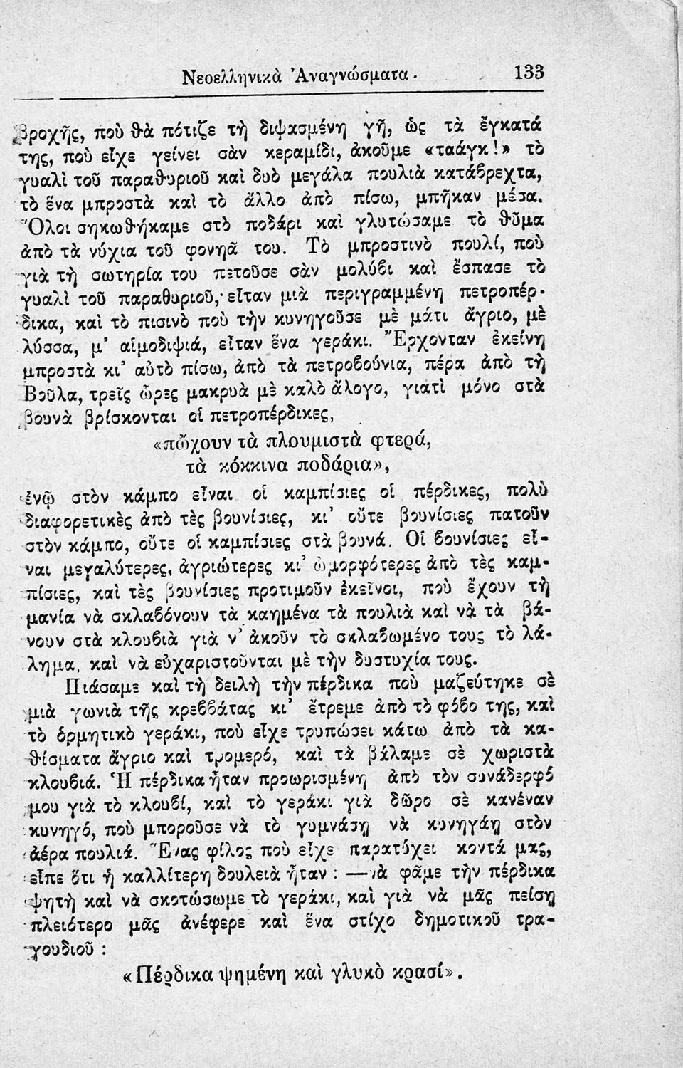 Σχολικό εγχειρίδιο Νεοελληνικών αναγνωσμάτων που περιλαμβάνει πεζά και ποιήματα με θέματα από την εθνική ζωή.