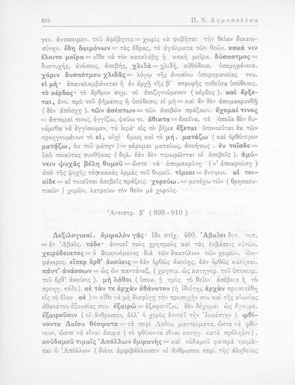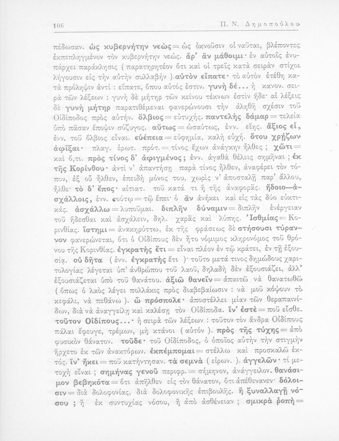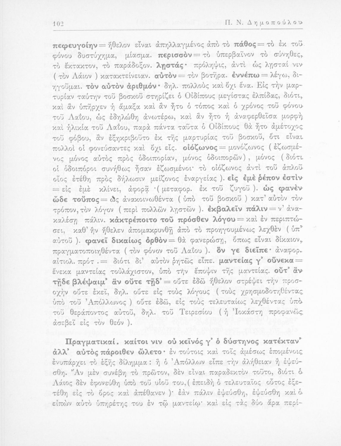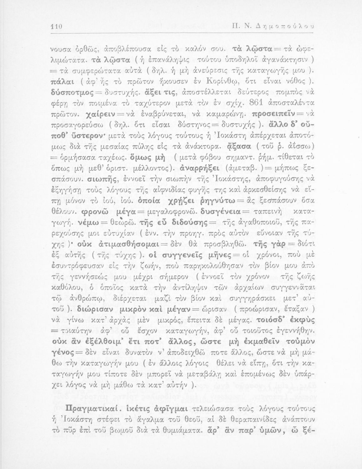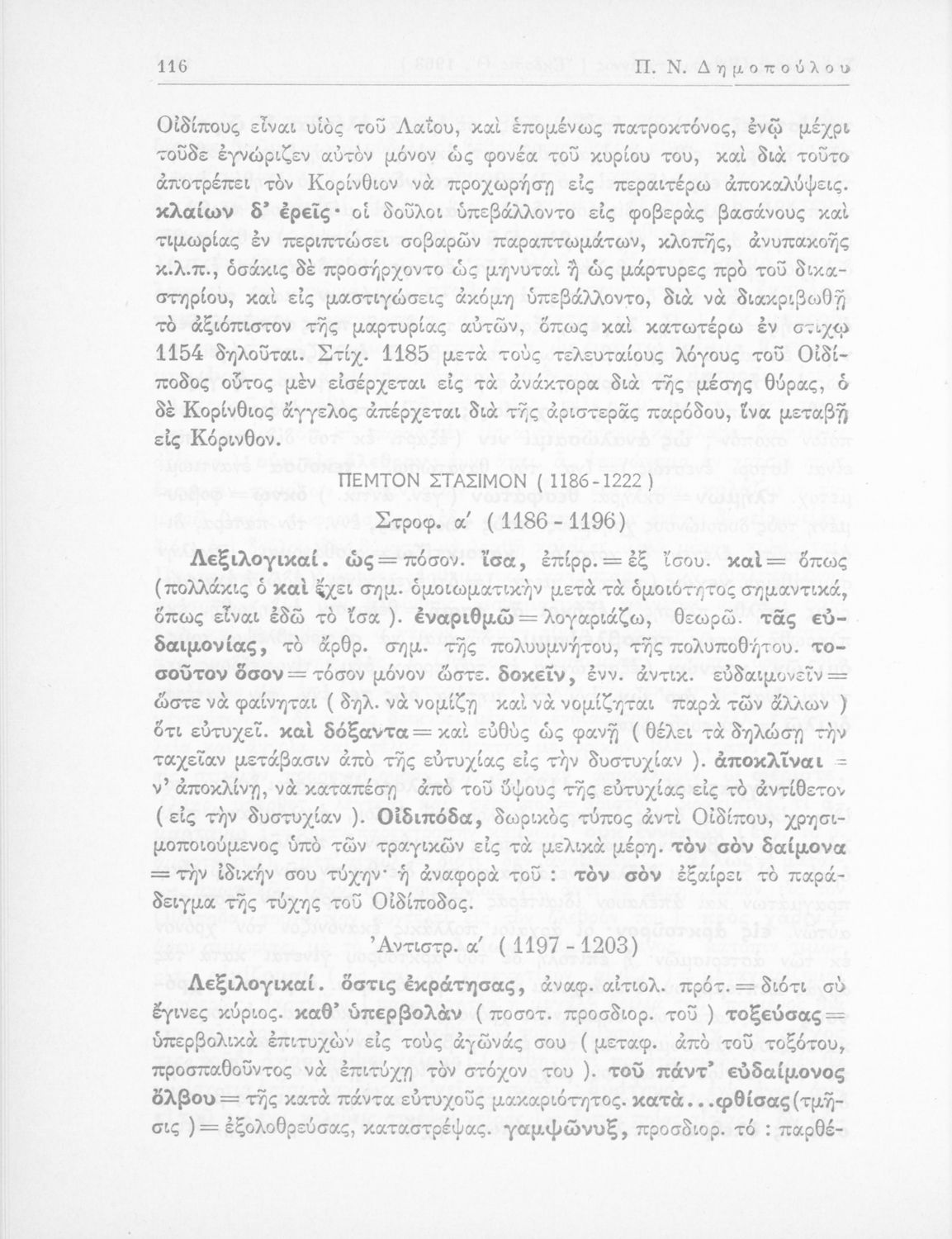 Σοφοκλής, Π. Ν Δημόπουλος (σχόλια)