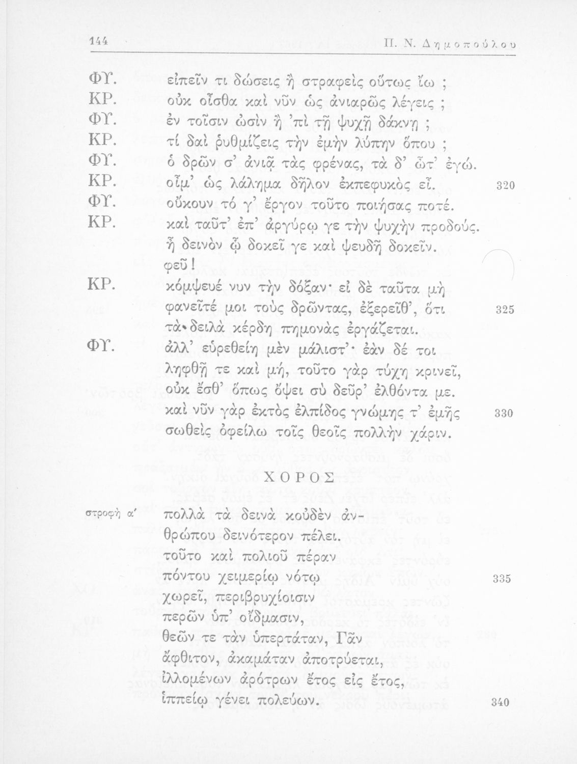 Σοφοκλής, Π. Ν Δημόπουλος (σχόλια)