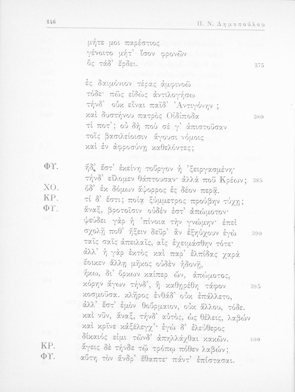 Σοφοκλής, Π. Ν. Δημόπουλος (σχόλια)