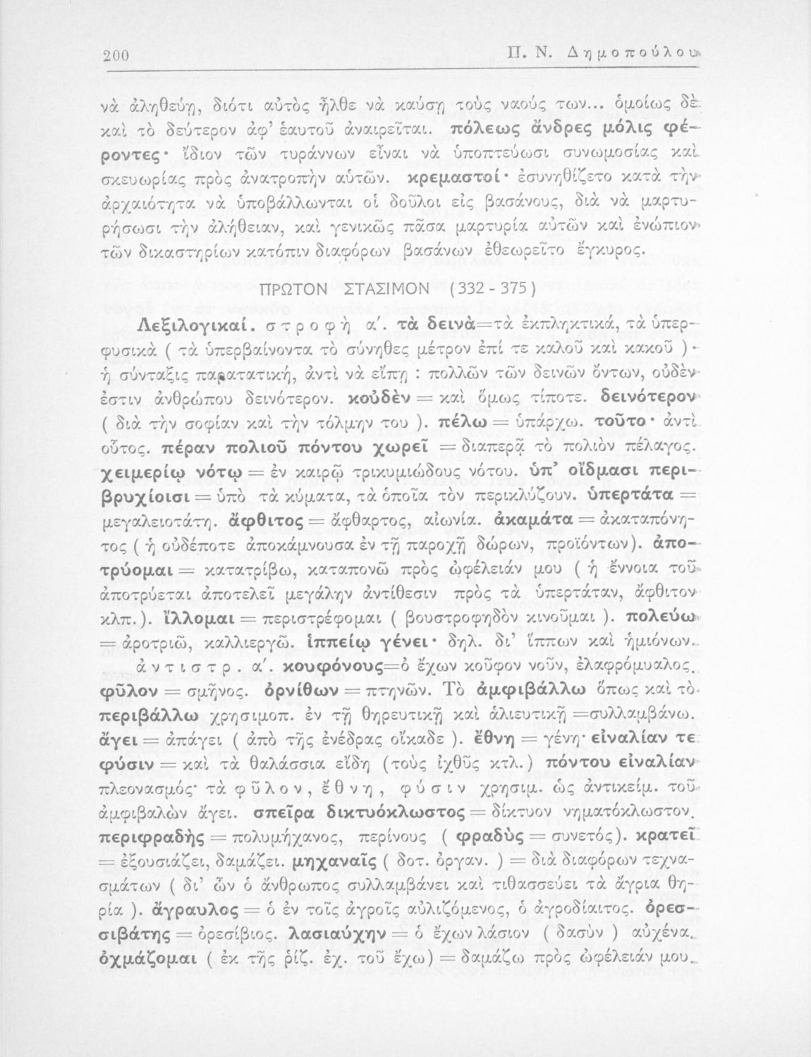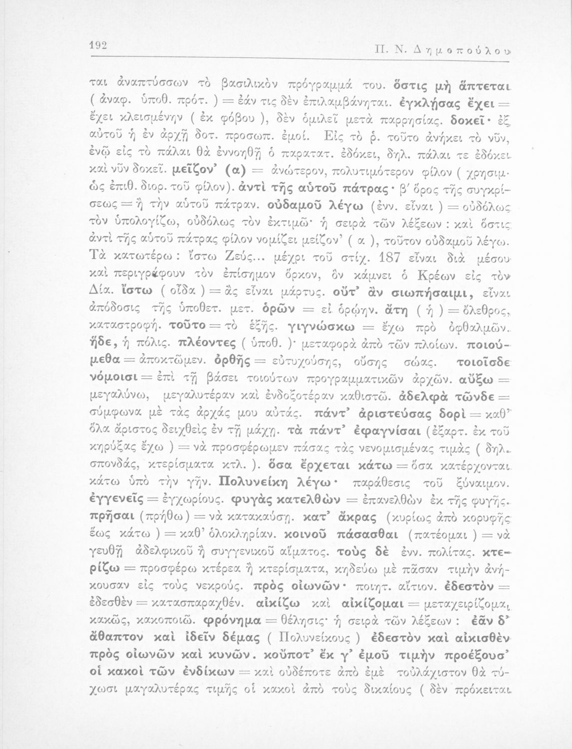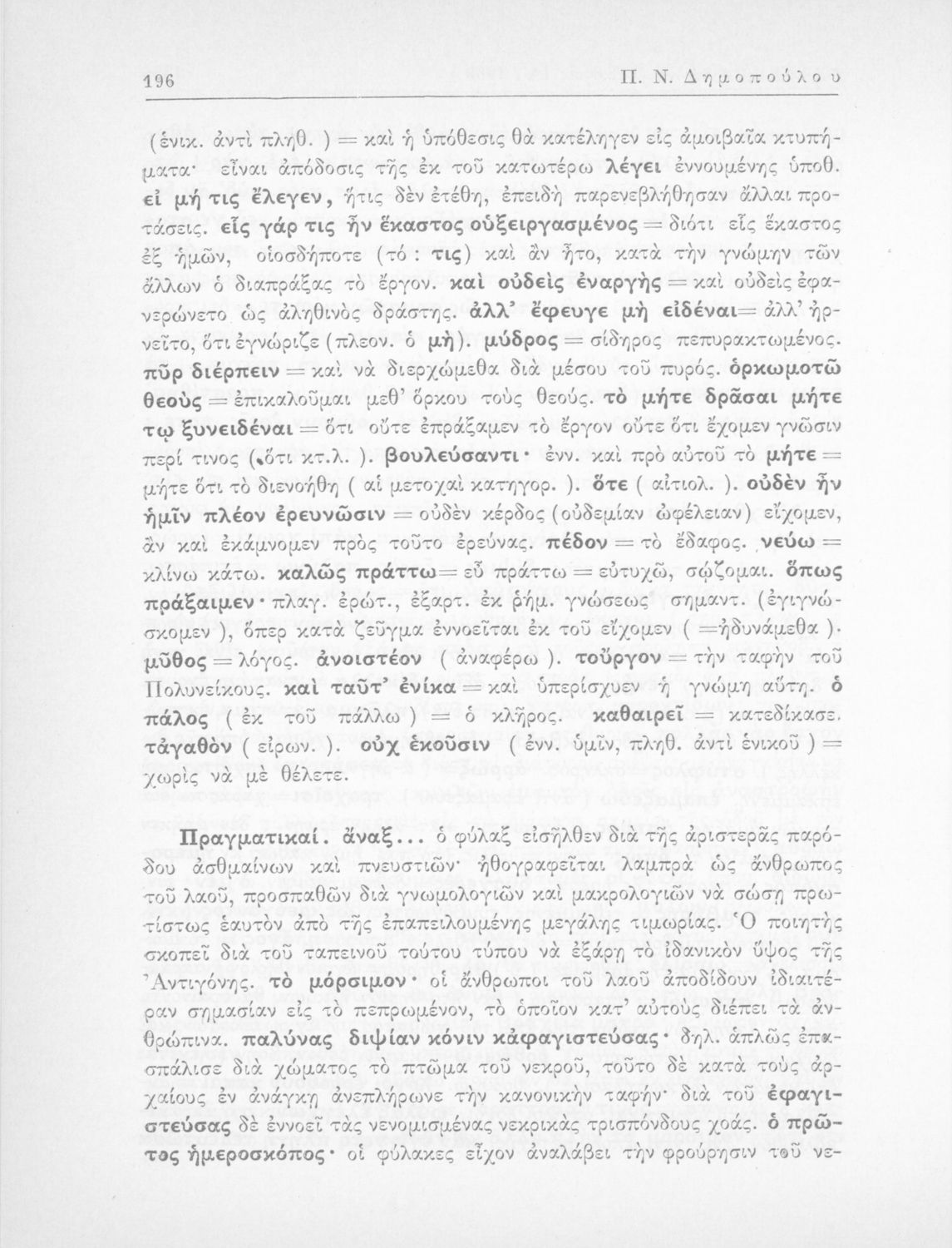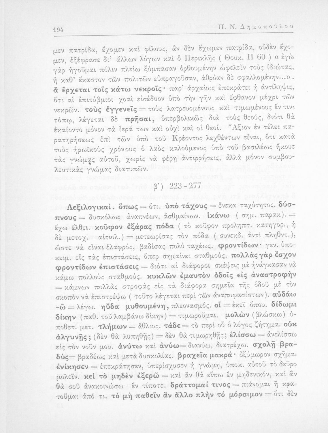 Σοφοκλής, Π. Ν Δημόπουλος (σχόλια)