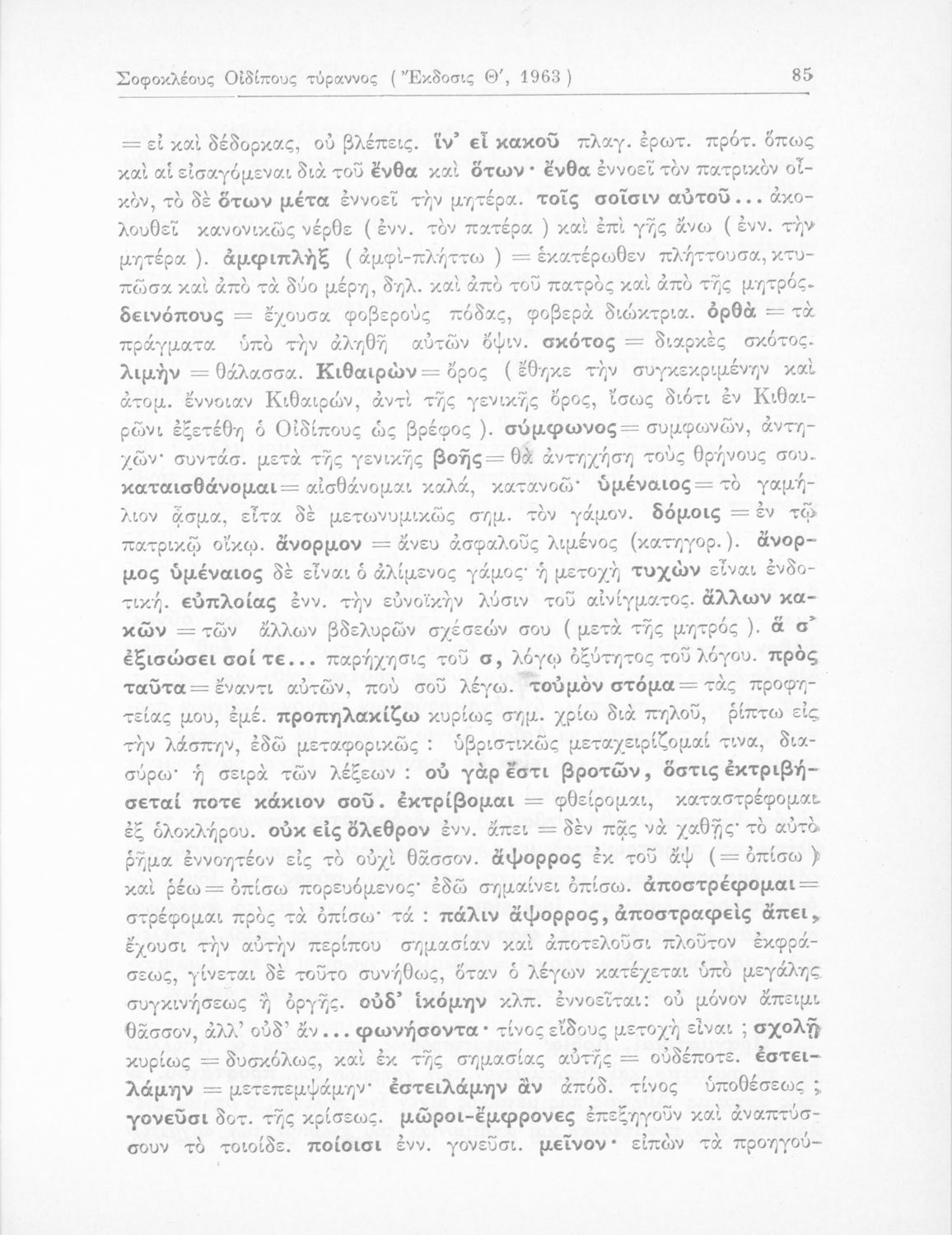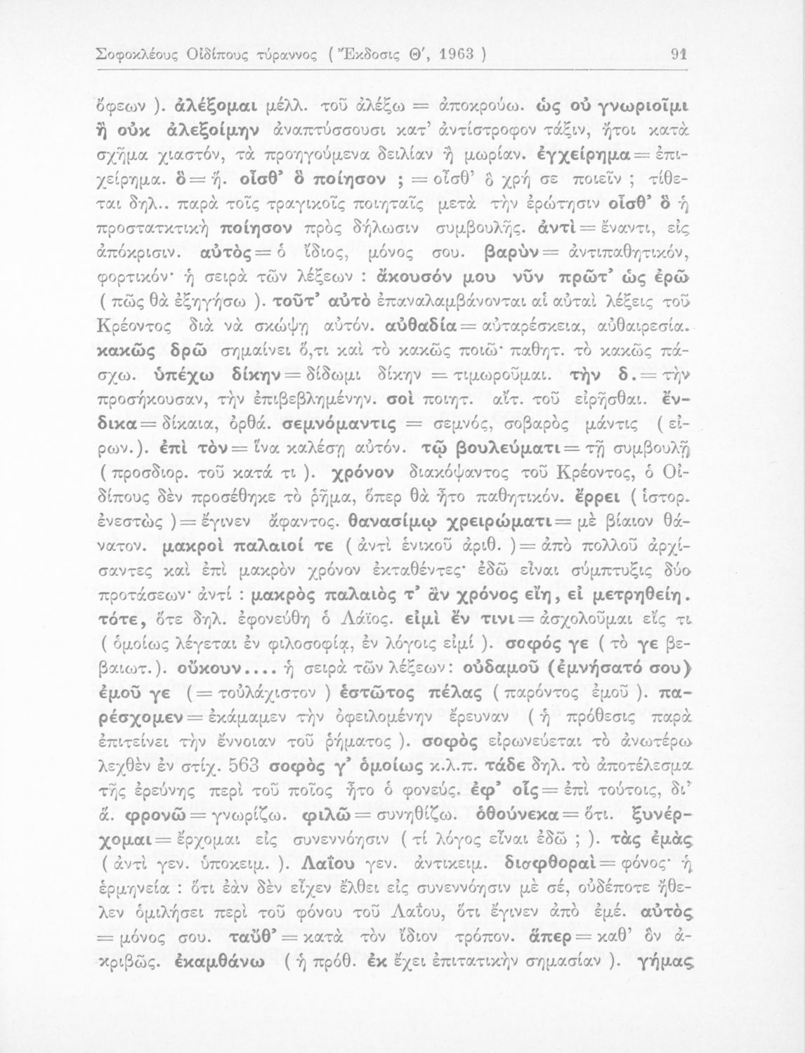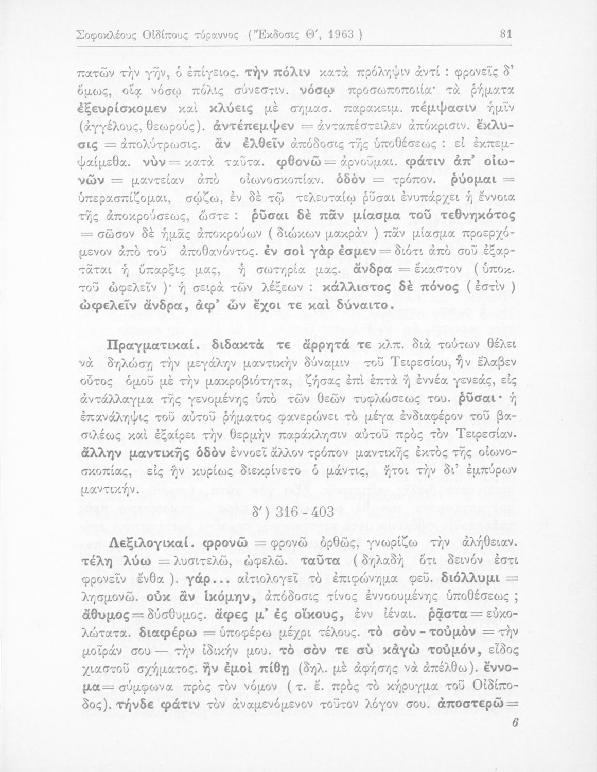 Σχολικό εγχειρίδιο της ΣΤ΄ Γυμνασίου για το μάθημα των Αρχαίων Ελληνικών. Περιλαμβάνει την τραγωδία Οιδίπους επί Κολωνώ, πραγματολογικά σχόλια και λεξιλογικές παρατηρήσεις. Ο συγγραφέας ήταν Γυμνασιάρχης.