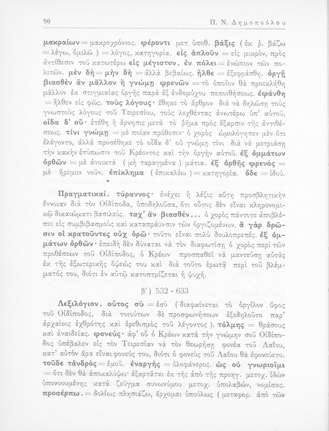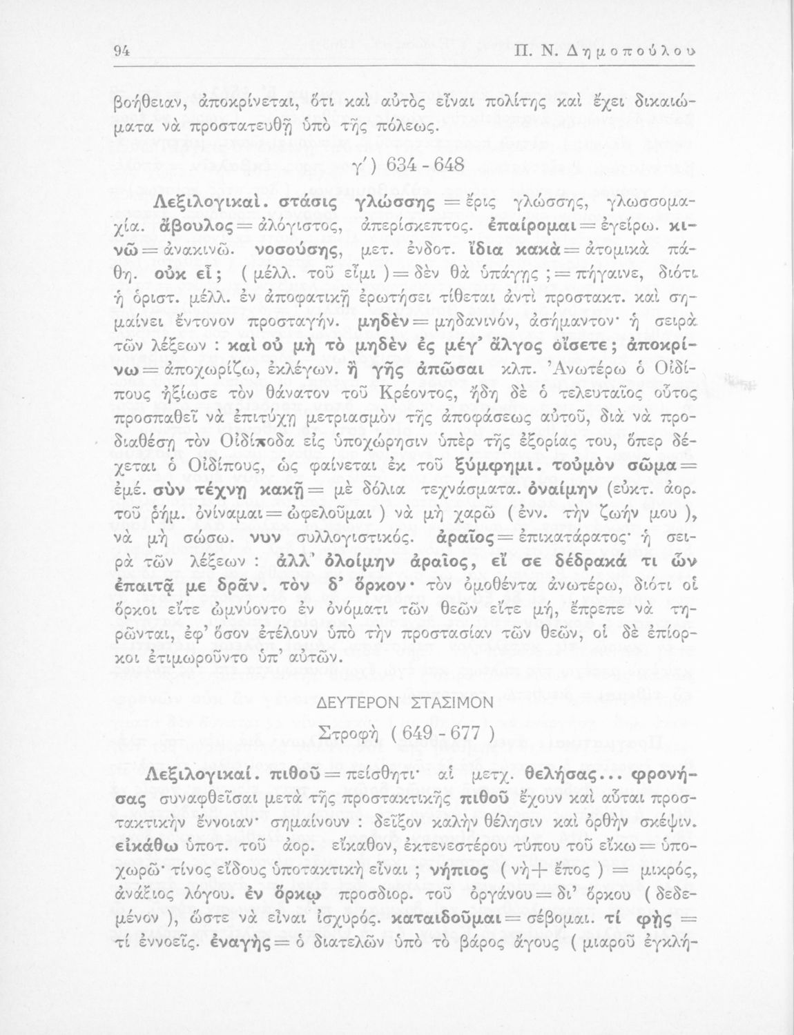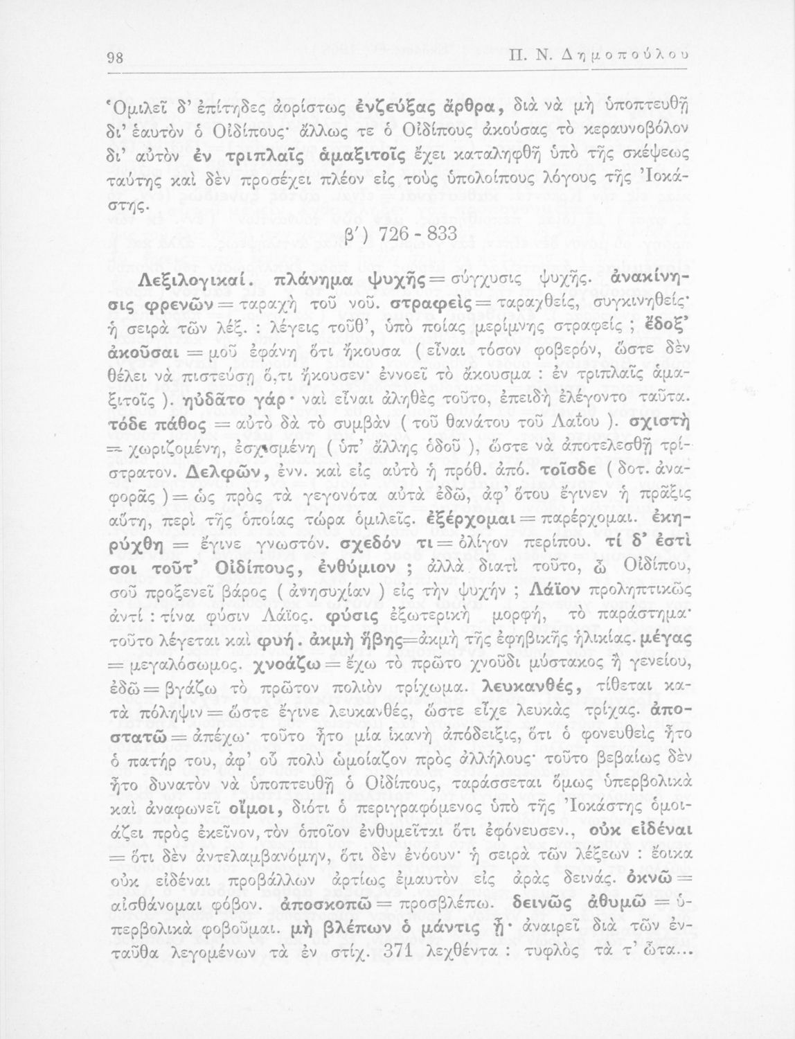 Σοφοκλής, Π. Ν. Δημόπουλος (σχόλια)