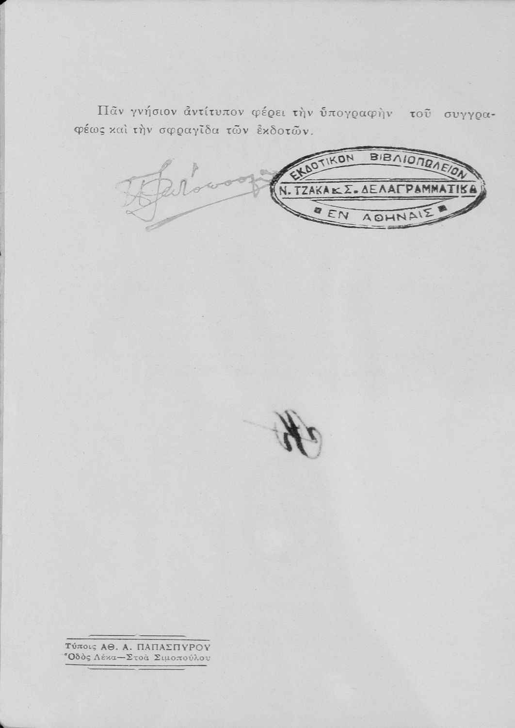 Εκδότης: Δημ. Ν. Τζάκας, Στεφ. Δελαγραμμάτικας και ΣΙΑ