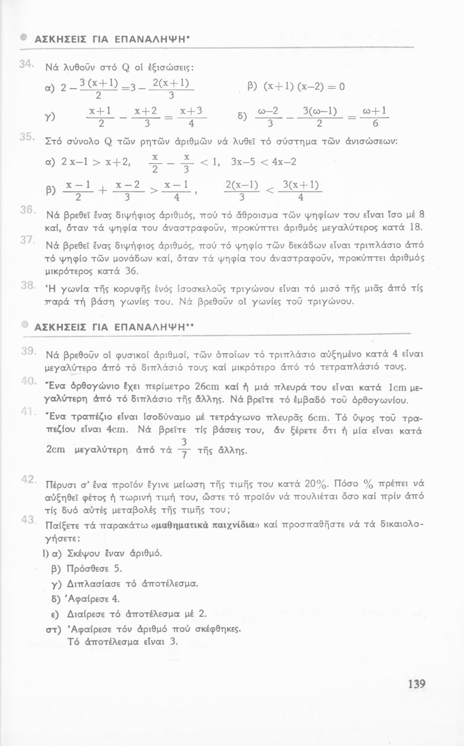 Σχολικό εγχειρίδιο Άλγεβρας Γυμνασίου που περιλαμβάνει θεωρία, ασκήσεις και στοιχεία λογιστικής.