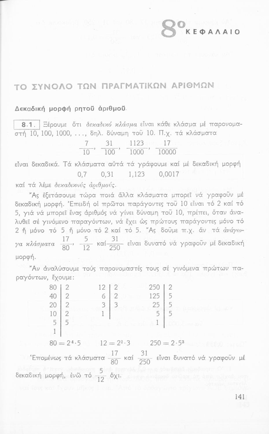Σχολικό εγχειρίδιο Αριθμητικής για τις Α΄, Β΄, Γ΄ Γυμνασίου που είναι χωρισμένο σε ορισμούς και ασκήσεις και εστιάζει στις ιδιότητες των αριθμητικών πράξεων, τα κλάσματα και την τετραγωνική ρίζα.