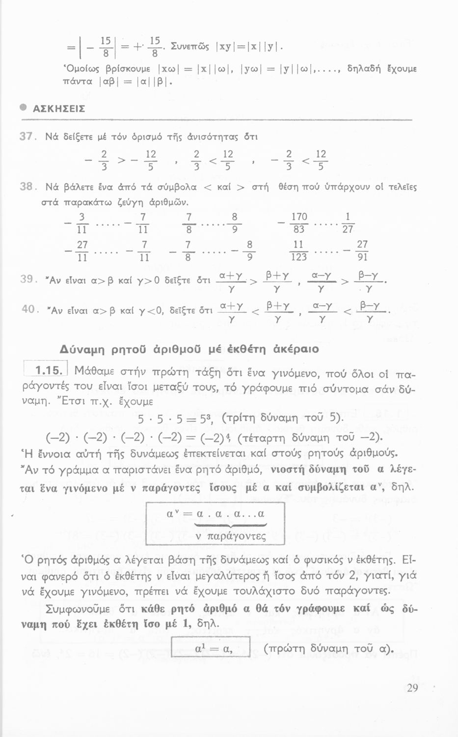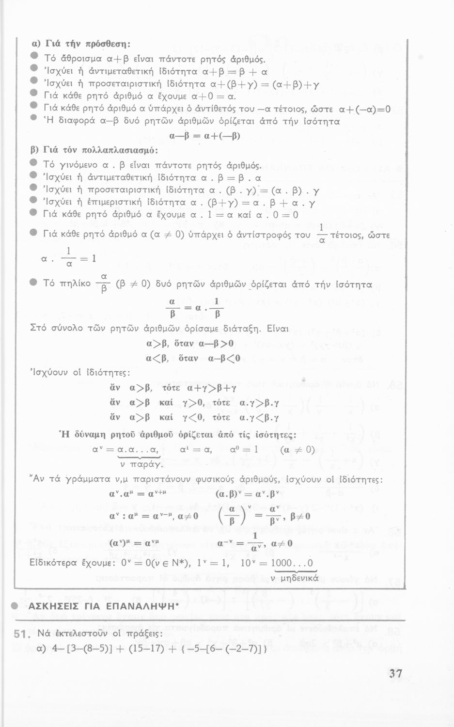 Σχολικό εγχειρίδιο Αριθμητικής Γυμνασίου που είναι χωρισμένο σε θεωρήματα και ασκήσεις και εστιάζει στις αριθμητικές πράξεις και τις ιδιότητές τους.