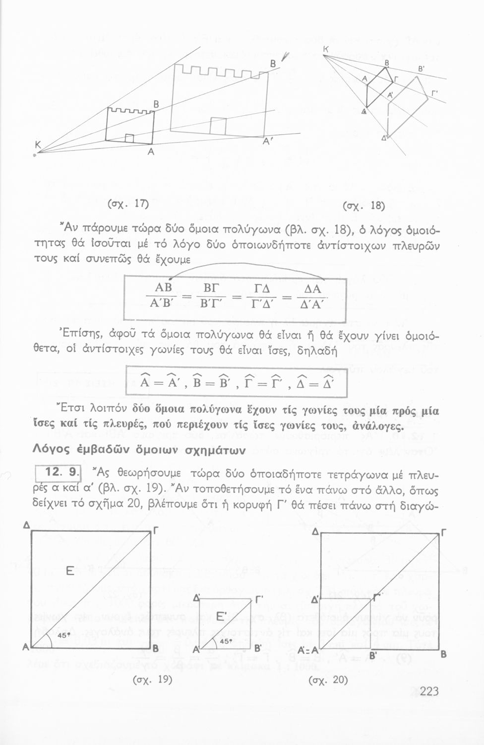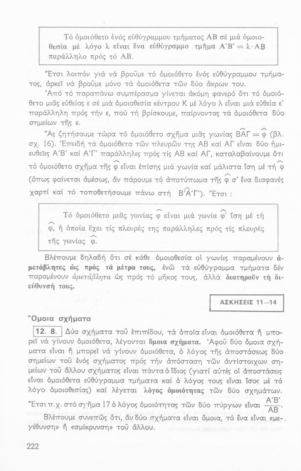 Σχολικό εγχειρίδιο Γεωμετρίας για την Α΄ και Β΄ Γυμνασίου που περιλαμβάνει θεωρία και ασκήσεις και είναι χωρισμένο σε Επιπεδομετρία και Στερεομετρία.