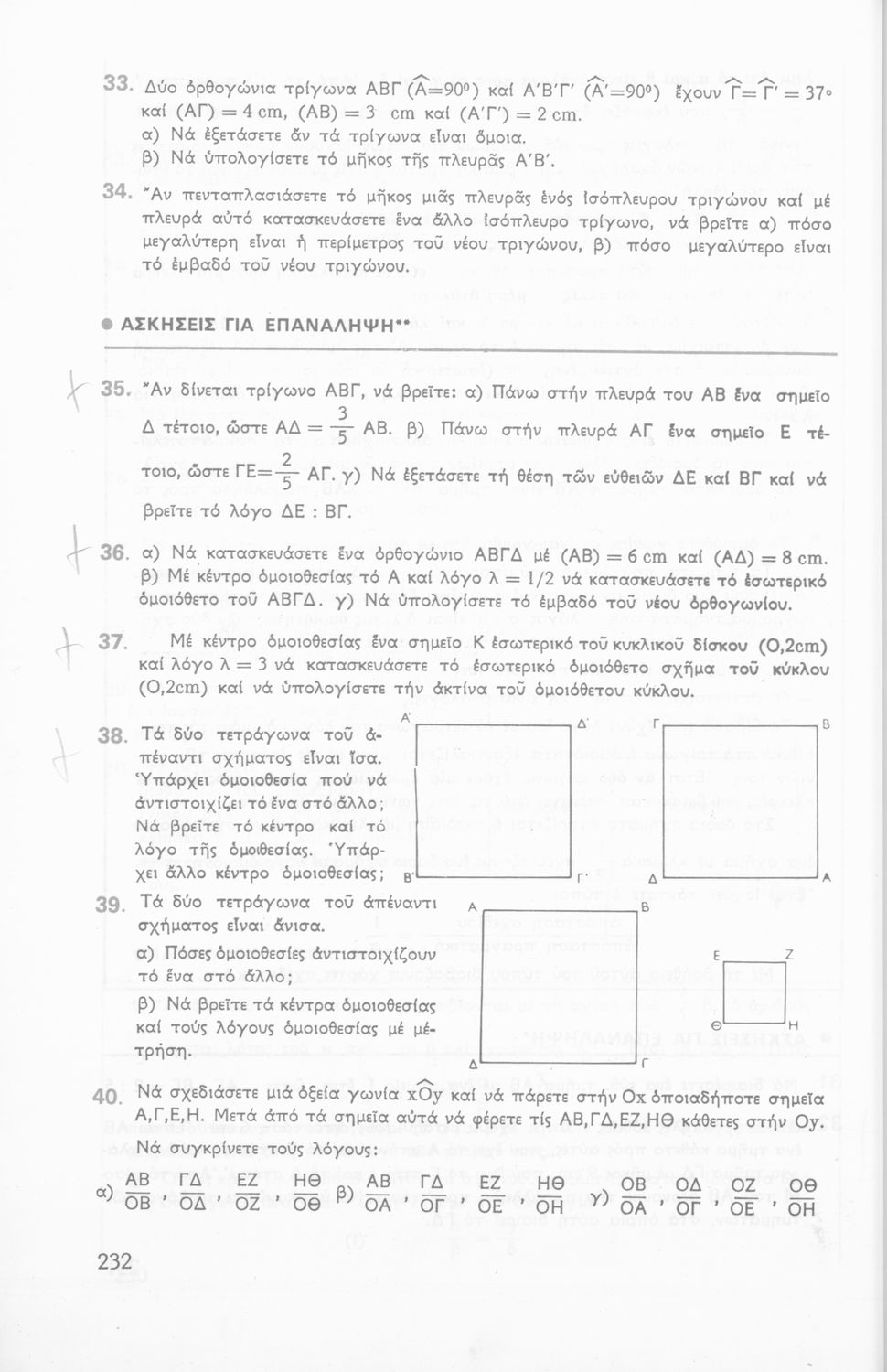 Σχολικό εγχειρίδιο Γεωμετρίας για την Α΄ και Β΄ Γυμνασίου χωρισμένο σε Επιπεδομετρία και Στερεομετρία που περιέχει θεωρία και ασκήσεις.