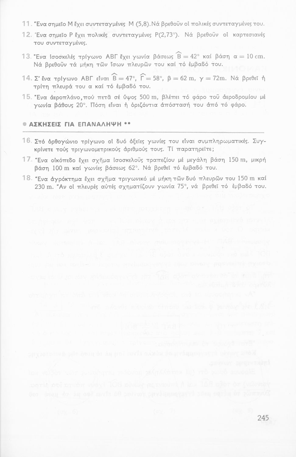 Σχολικό εγχειρίδιο Γεωμετρίας για τις Α΄, Β΄, Γ΄ Γυμνασίου που είναι χωρισμένο σε Επιπεδομετρία και Στερεομετρία και περιλαμβάνει θεωρία και ασκήσεις.