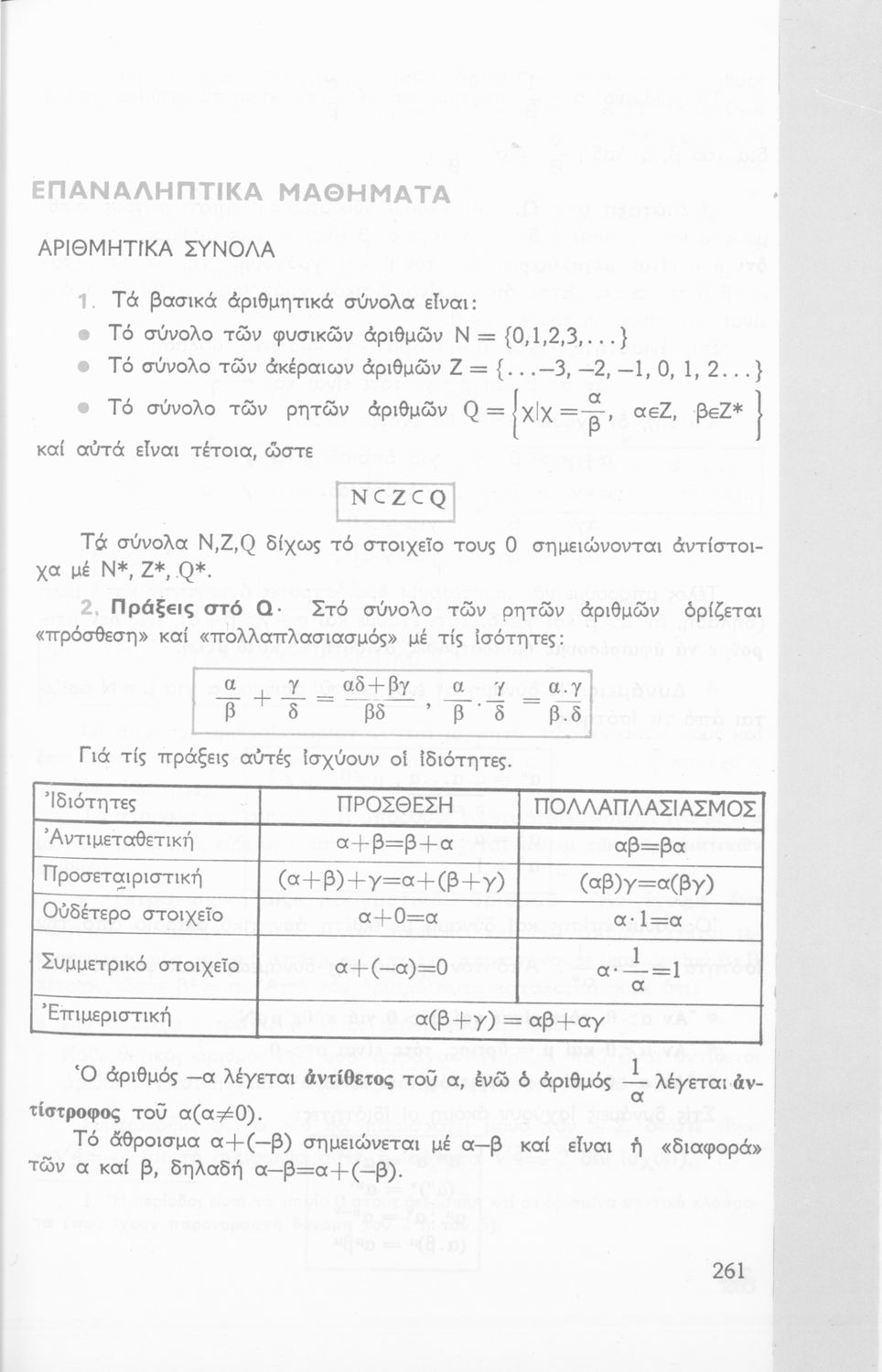 Σχολικό εγχειρίδιο Αριθμητικής για τις Α΄, Β΄, Γ΄ Γυμνασίου που είναι χωρισμένο σε ορισμούς και ασκήσεις και εστιάζει στις ιδιότητες των αριθμητικών πράξεων, τα κλάσματα και την τετραγωνική ρίζα.