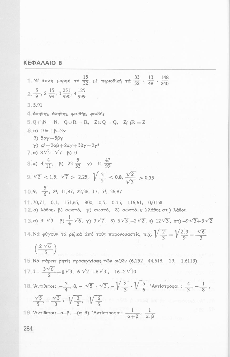 Σχολικό εγχειρίδιο Μαθηματικών Β΄ Γυμνασίου που περιλαμβάνει Άλγεβρα, Γεωμετρία και Τριγωνομετρία.