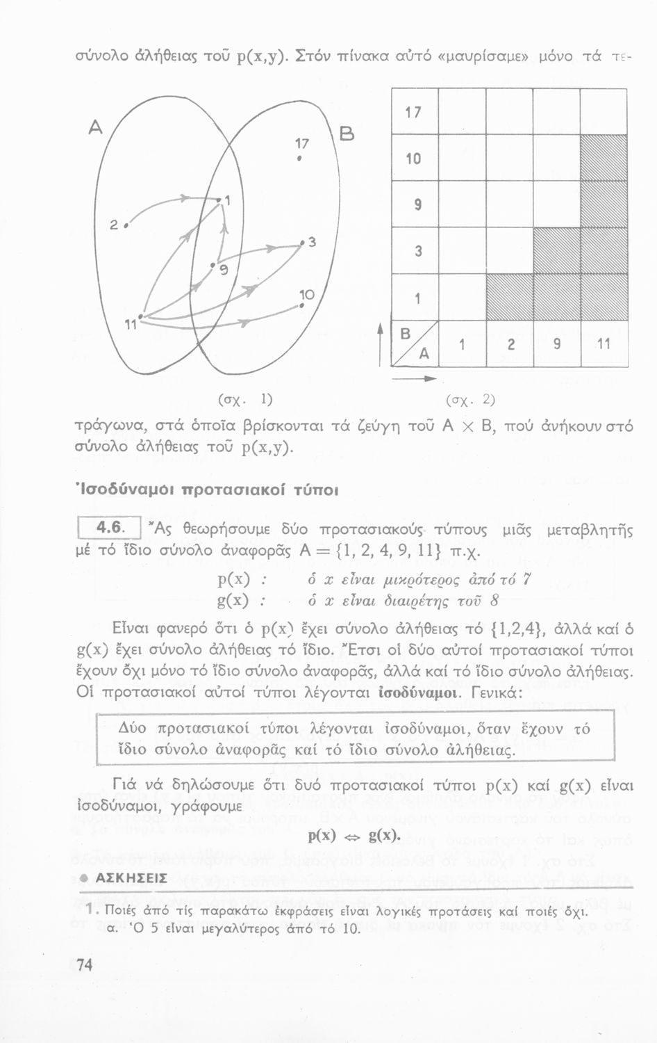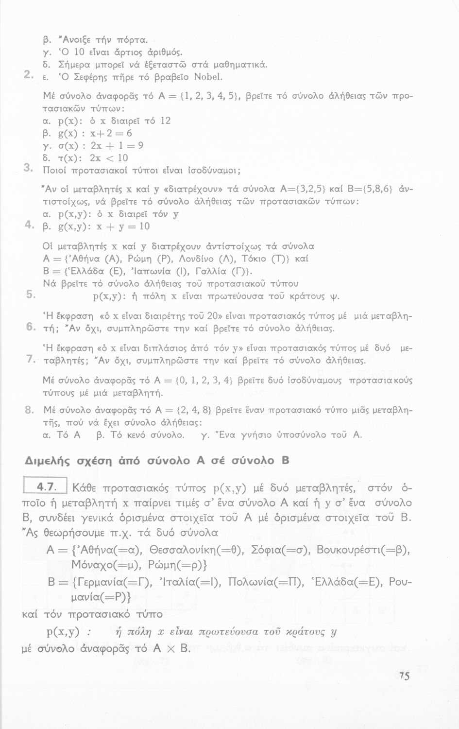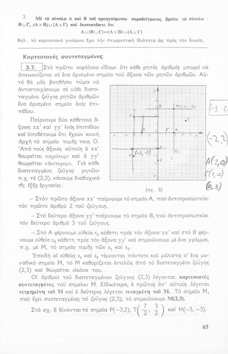 Σχολικό Εγχειρίδιο Μαθηματικών Β' Γυμνασίου που περιλαμβάνει αριθμητική με έμφαση στα σύνολα, τις μεθόδους υπολογισμού τόκων και επιτοκίων, και την μέθοδο των τριών, και γεωμετρία με έμφαση στα γεωμετρικά ...