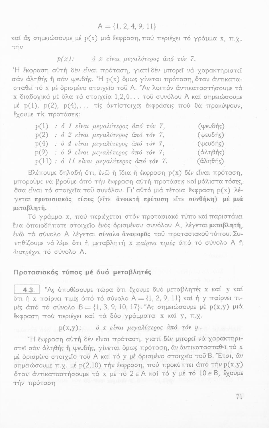 Σχολικό εγχειρίδιο Άλγεβρας Γυμνασίου που περιέχει θεωρία και ασκήσεις. Ο συγγραφέας ήταν υφηγητής στο Εθνικό Πανεπιστήμιο.