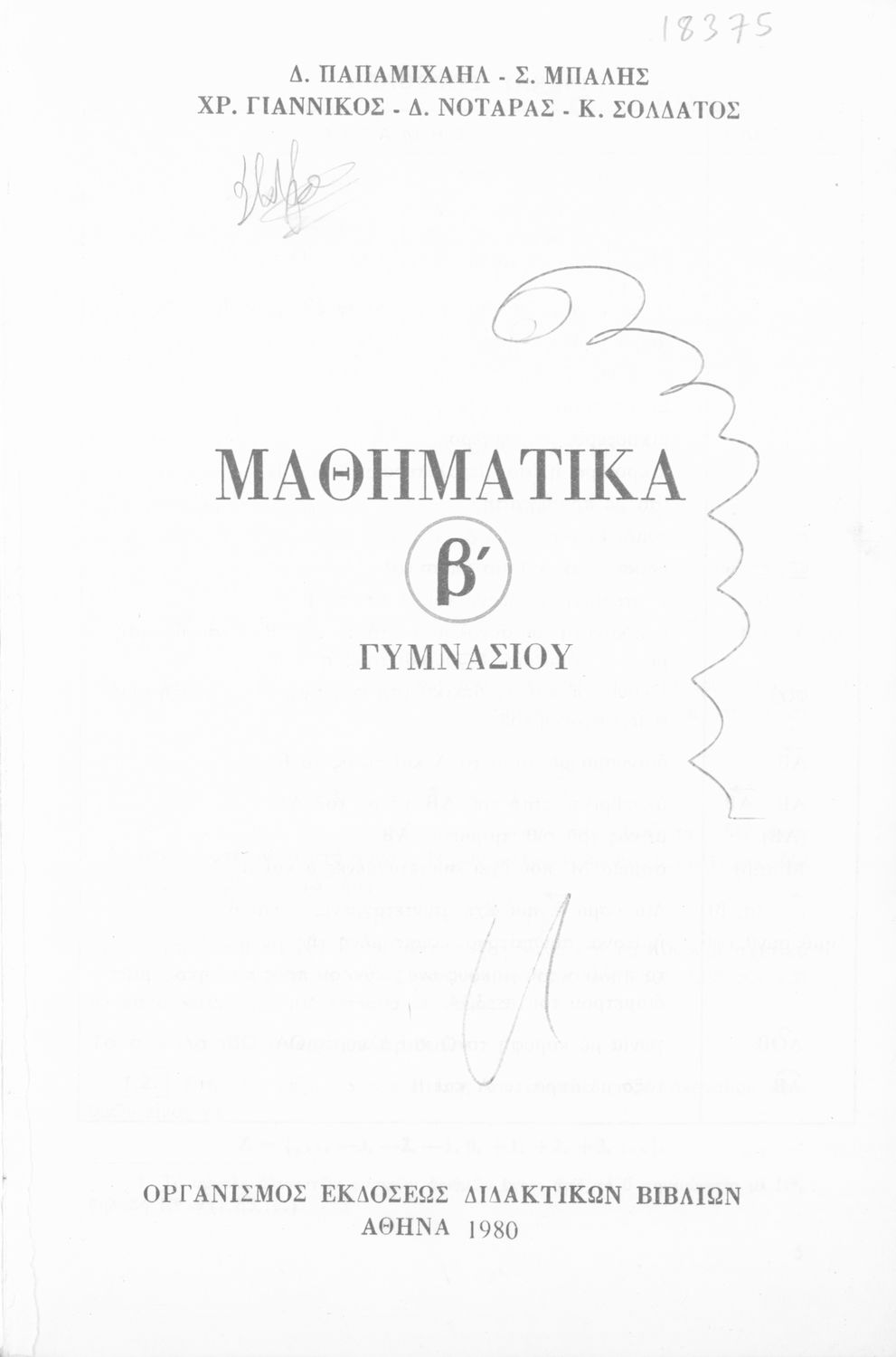 Σχολικό εγχειρίδιο Μαθηματικών Β΄ Γυμνασίου που περιλαμβάνει Άλγεβρα, Γεωμετρία και Τριγωνομετρία.