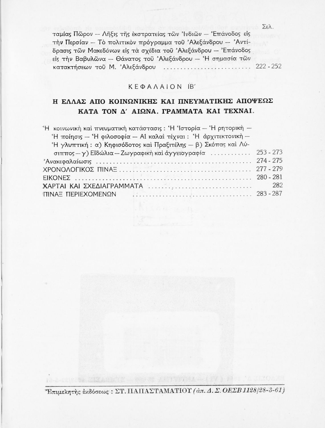 Τίτλος: Ιστορία των ανατολικών λαών και της αρχαίας Ελλάδος από των μηδικών πολέμων μέχρι του θανάτου του Μεγάλου Αλεξάνδρου. Δια την Β΄ Τάξιν των Εξαταξίων Γυμνασίων