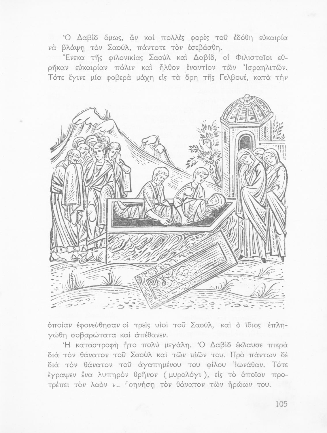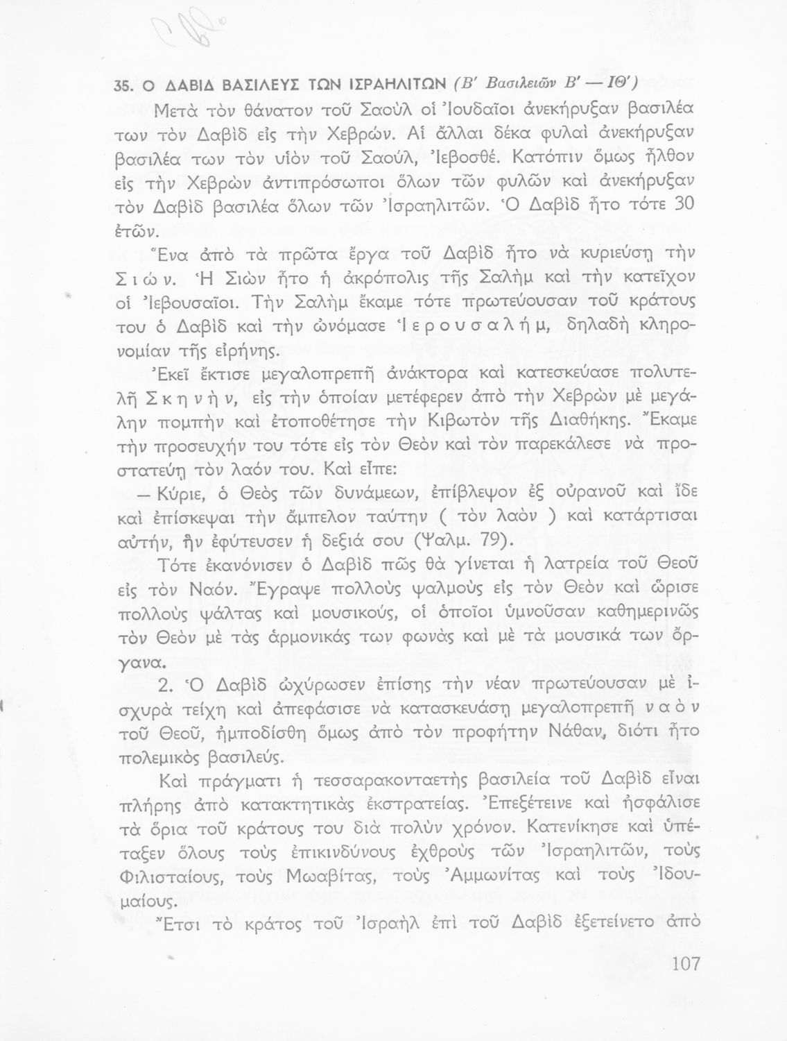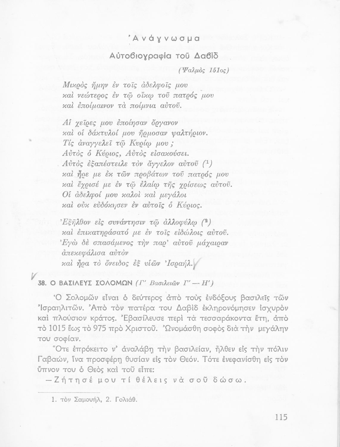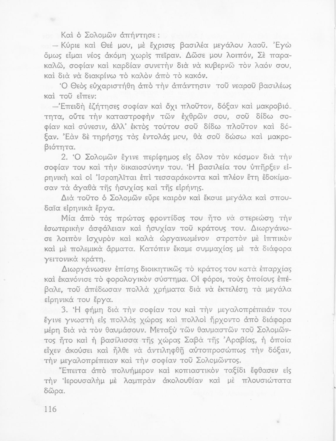 Σχολικό εγχειρίδιο Θρησκευτικών που συνιστά μία εξιστόρηση της Παλαιάς Διαθήκης από τη δημιουργία του κόσμου ως την υποταγή των Εβραίων στους Ρωμαίους. Περιέχει και στοιχεία γεωγραφίας της Παλαιστίνης.