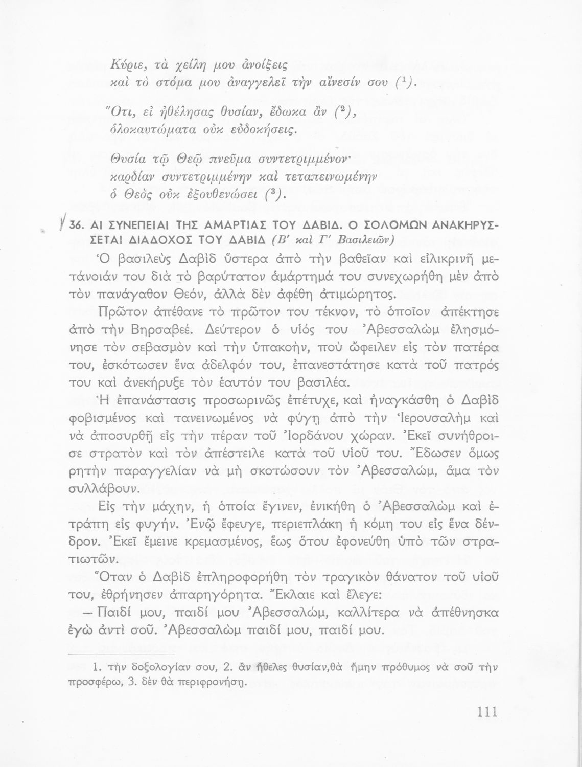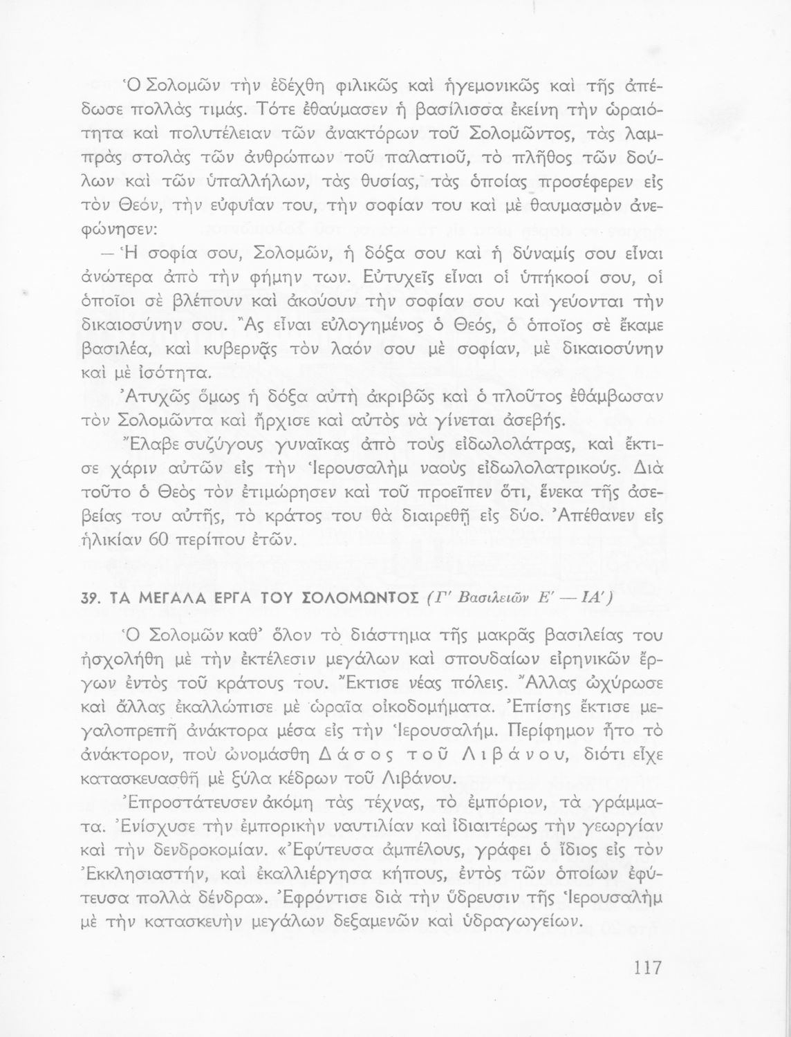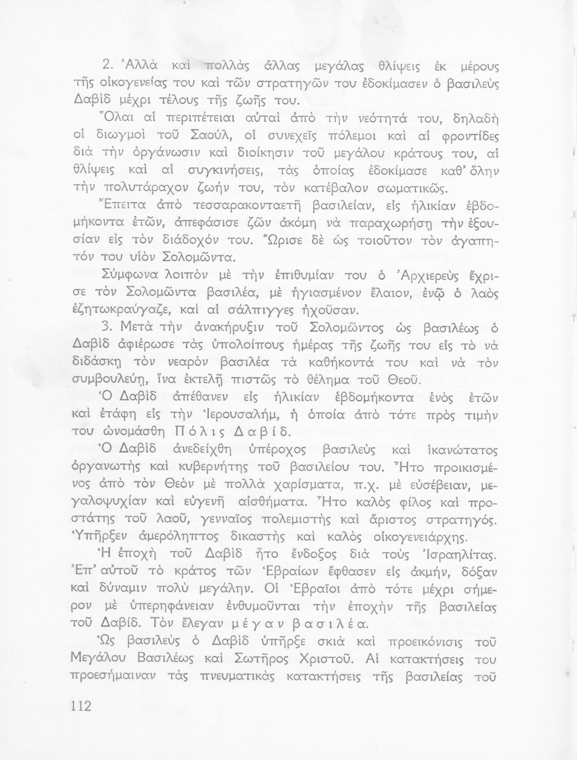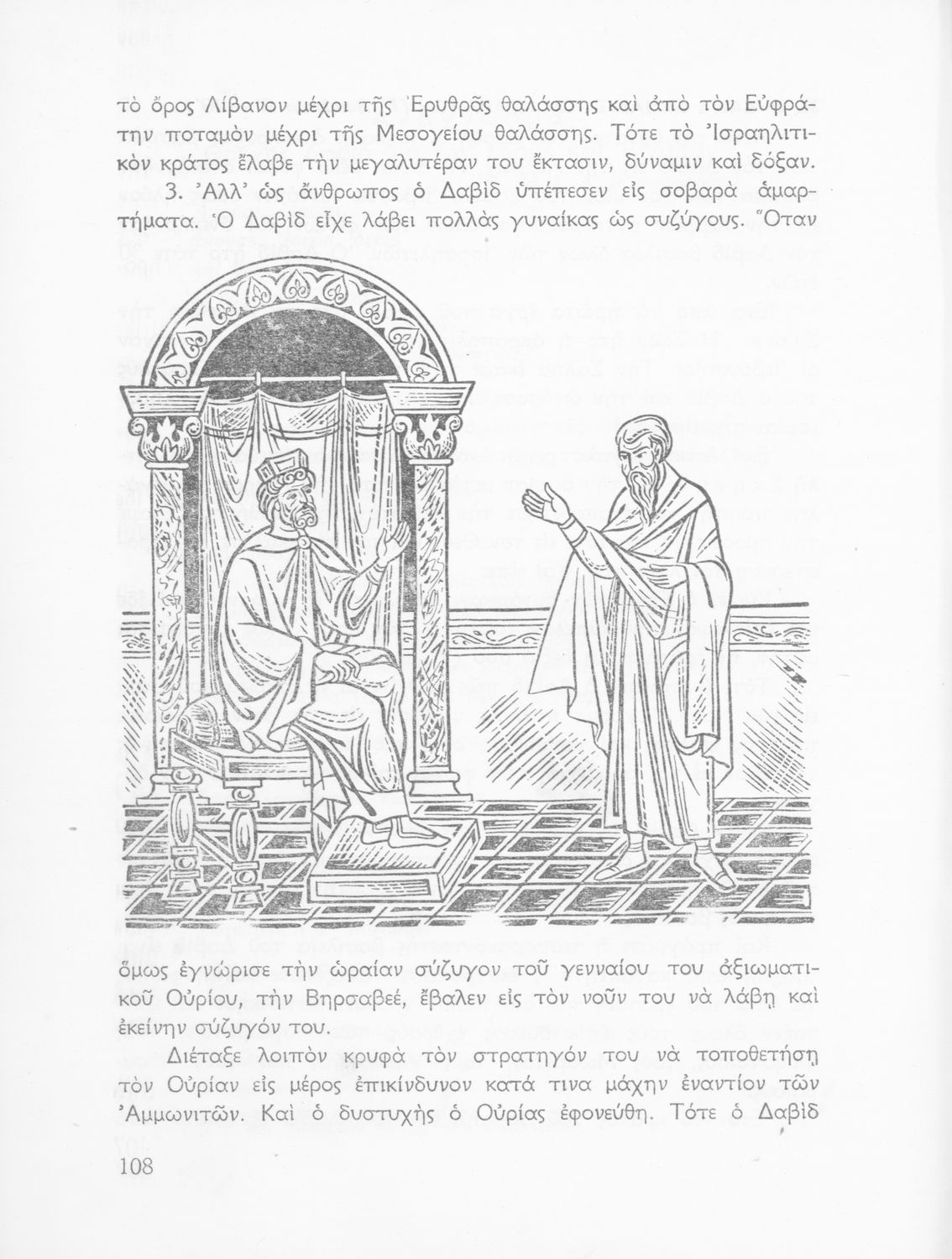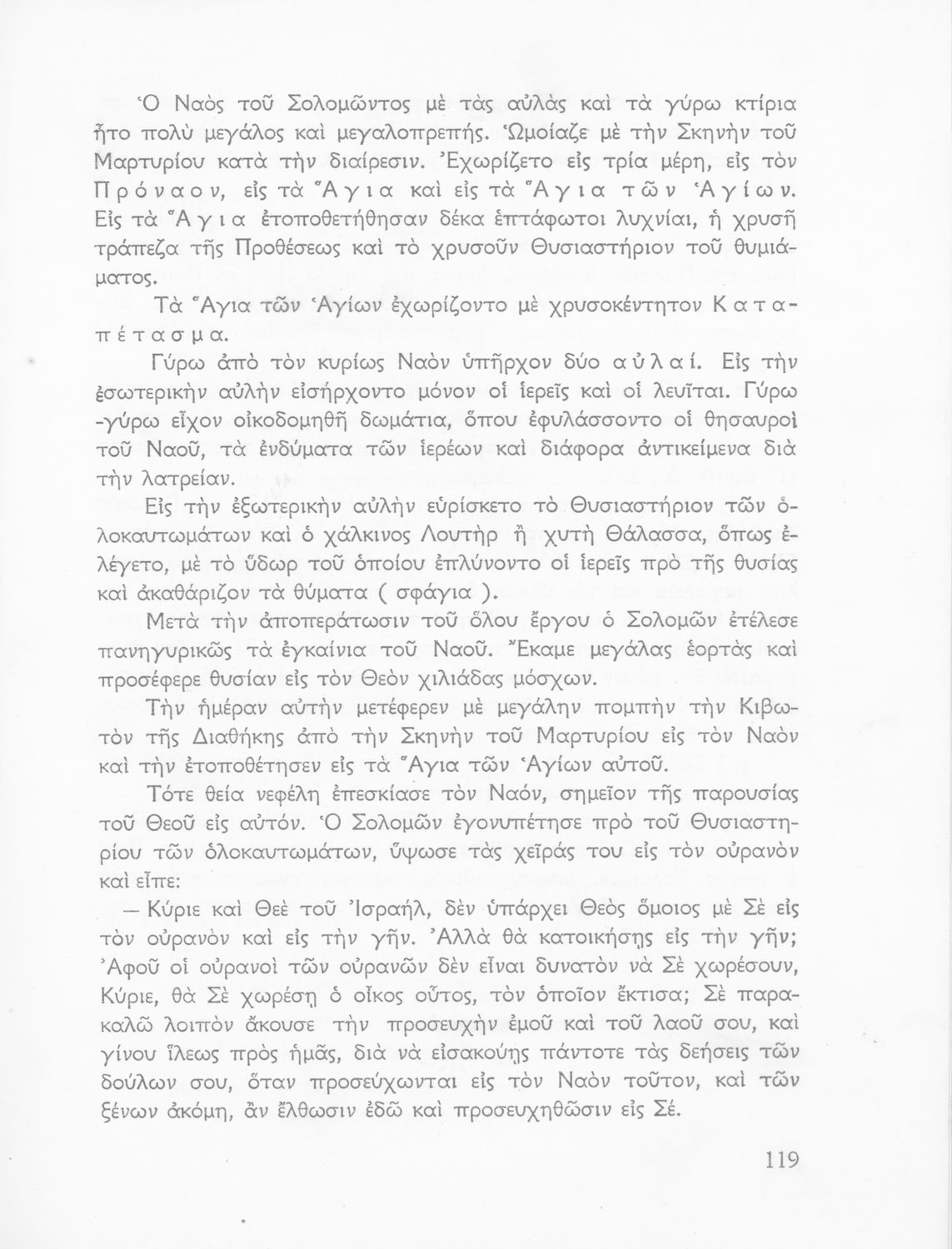 Σχολικό εγχειρίδιο Θρησκευτικών που συνιστά μία εξιστόρηση της Παλαιάς Διαθήκης από τη δημιουργία του κόσμου ως την υποταγή των Εβραίων στους Ρωμαίους. Περιέχει και στοιχεία γεωγραφίας της Παλαιστίνης.
