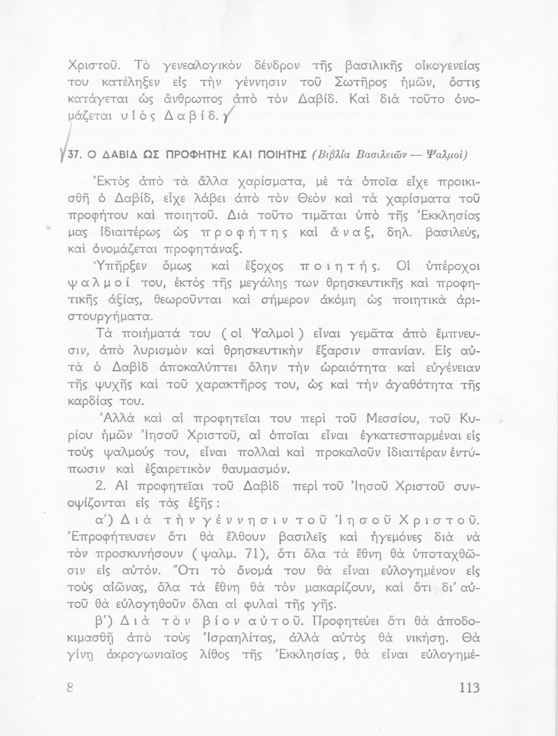 Μάθημα: Θρησκευτικά Γλώσσα: Απλή καθαρεύουσα Παρουσίαση περιεχομένου: Σχολικό εγχειρίδιο Θρησκευτικών που συνιστά μία εξιστόρηση της Παλαιάς Διαθήκης από τη δημιουργία του κόσμου ως την υποταγή των Εβραίων στους Ρωμαίους. Περιέχει και στοιχεία γεωγραφίας της Παλαιστίνης. |