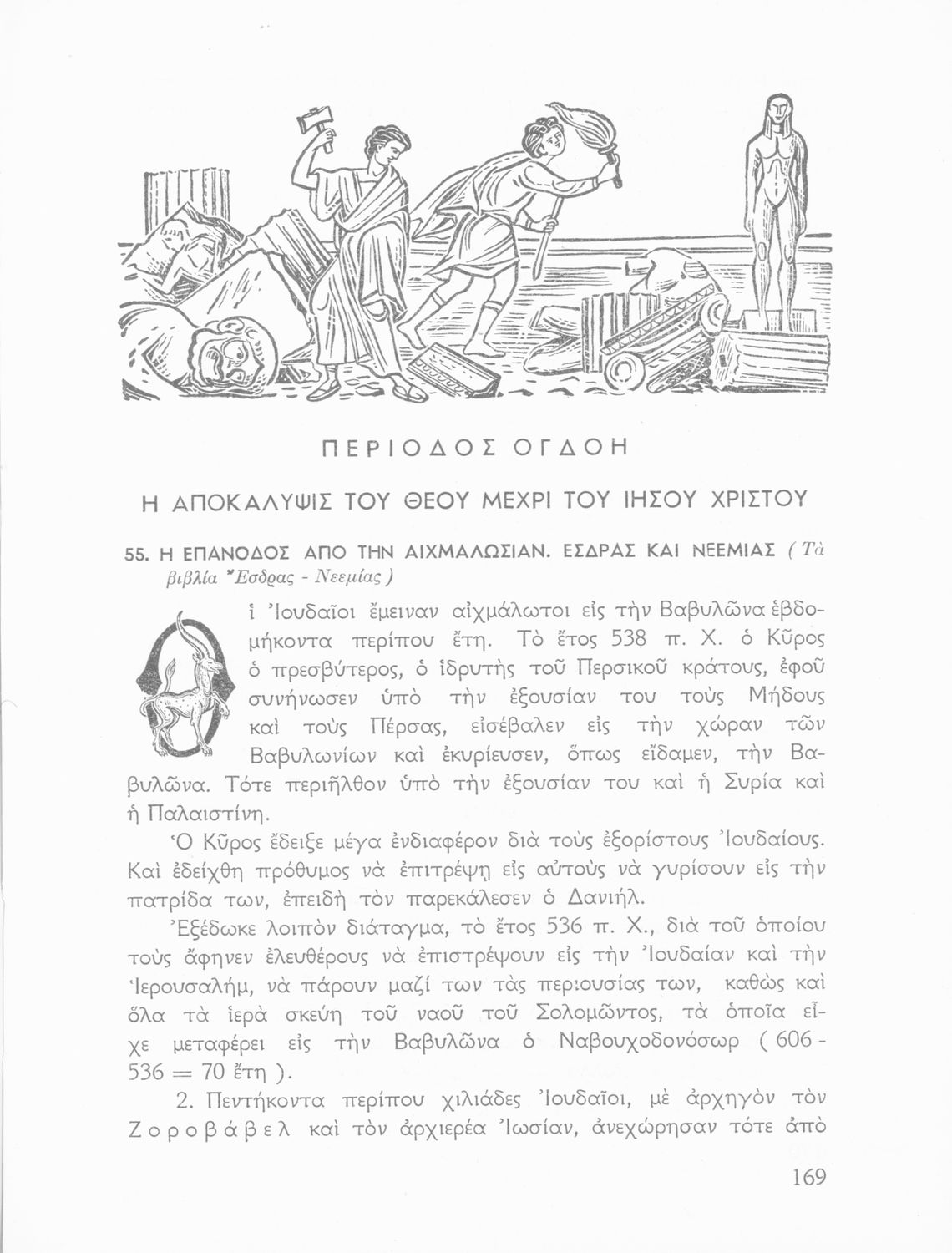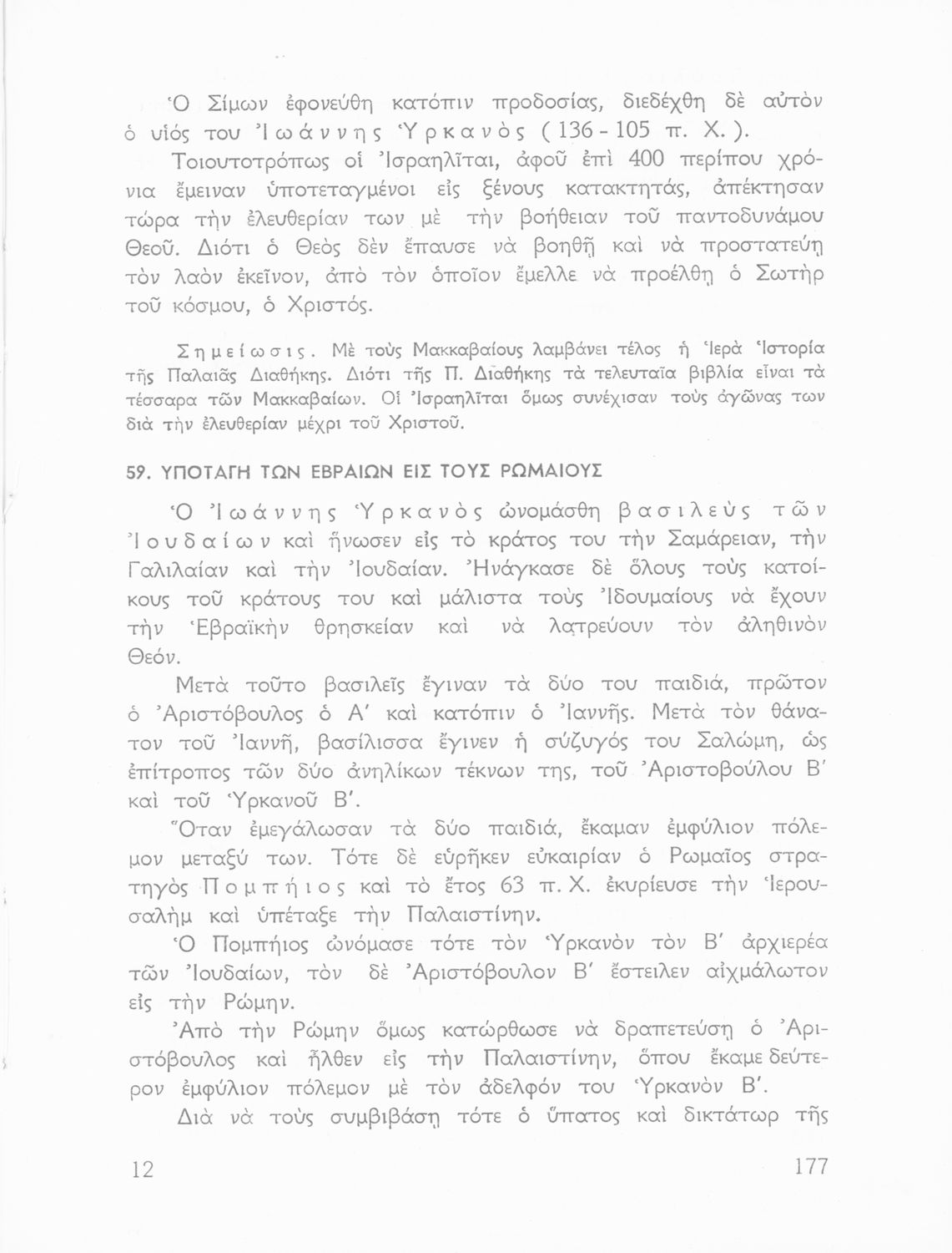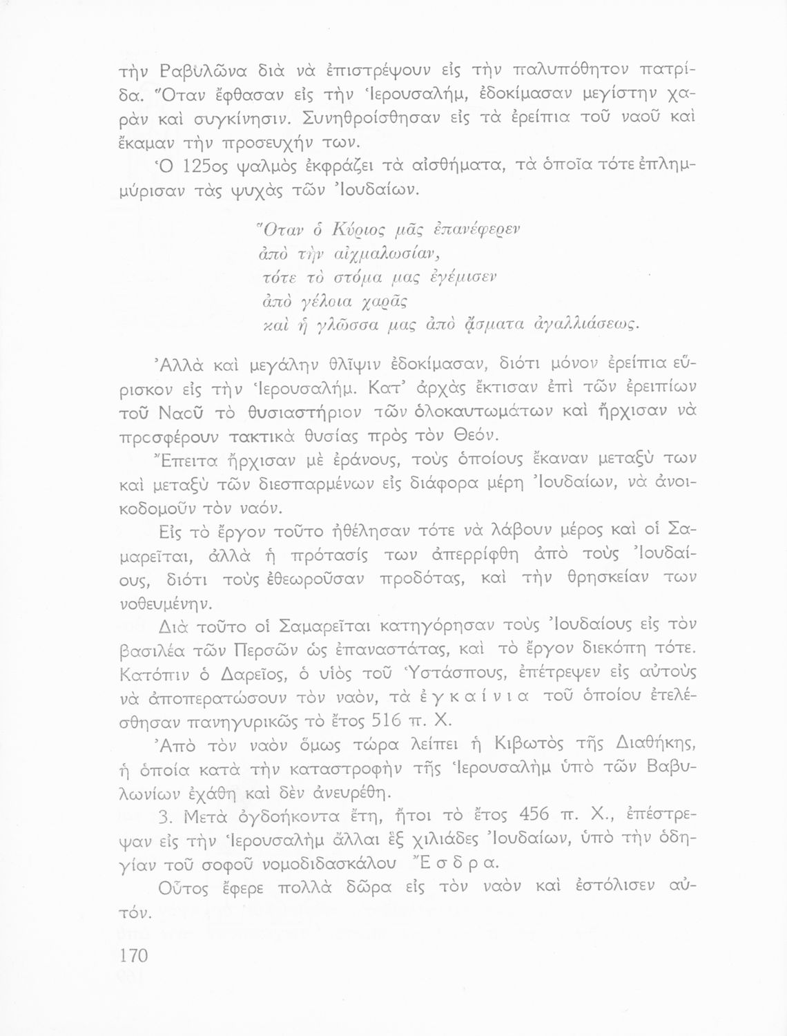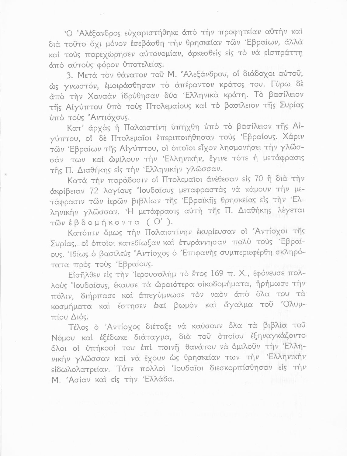 Σχολικό εγχειρίδιο Θρησκευτικών που συνιστά μία εξιστόρηση της Παλαιάς Διαθήκης από τη δημιουργία του κόσμου ως την υποταγή των Εβραίων στους Ρωμαίους. Περιέχει και στοιχεία γεωγραφίας της Παλαιστίνης.
