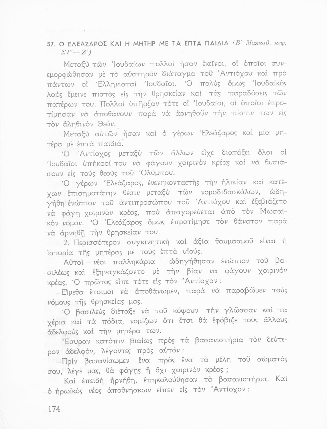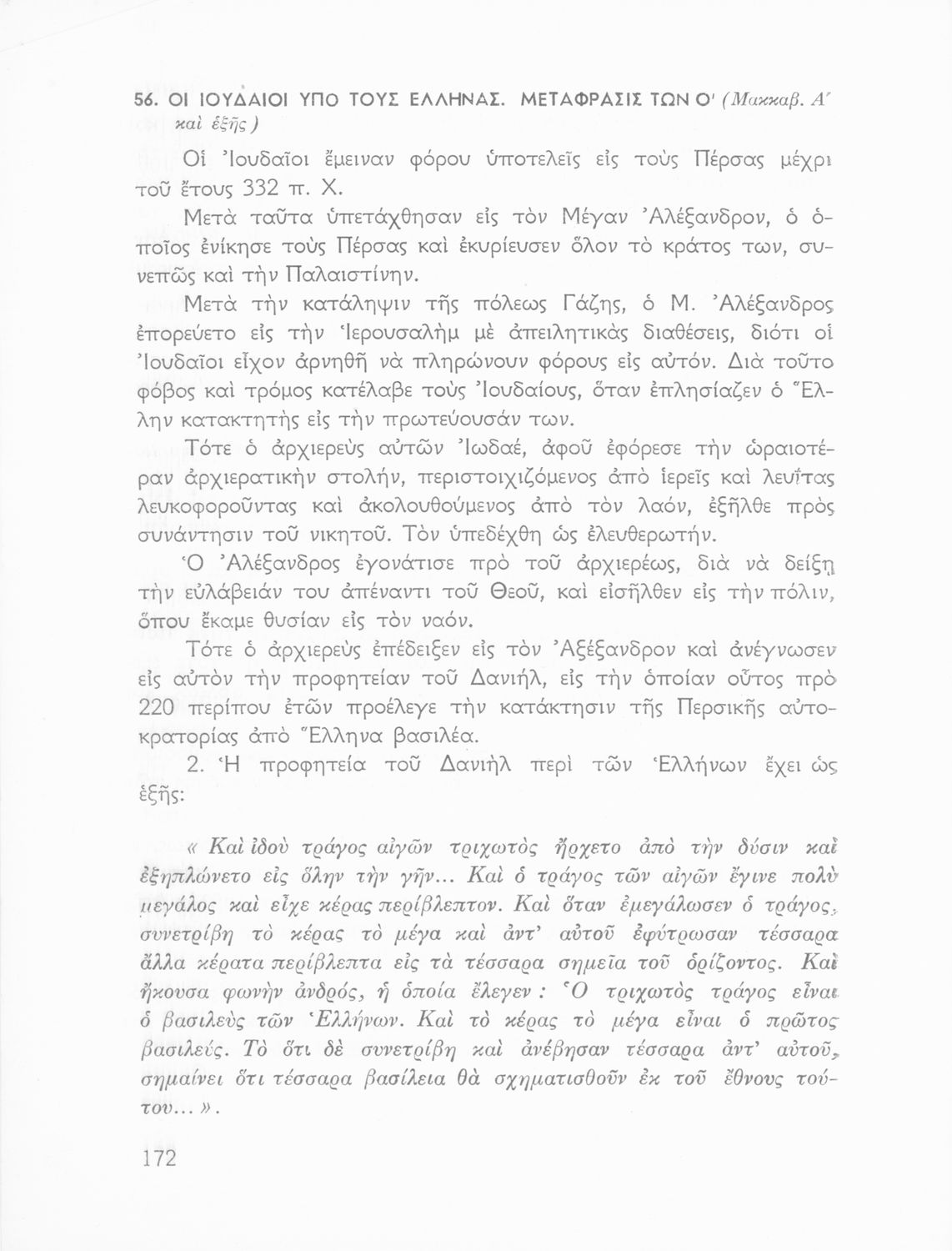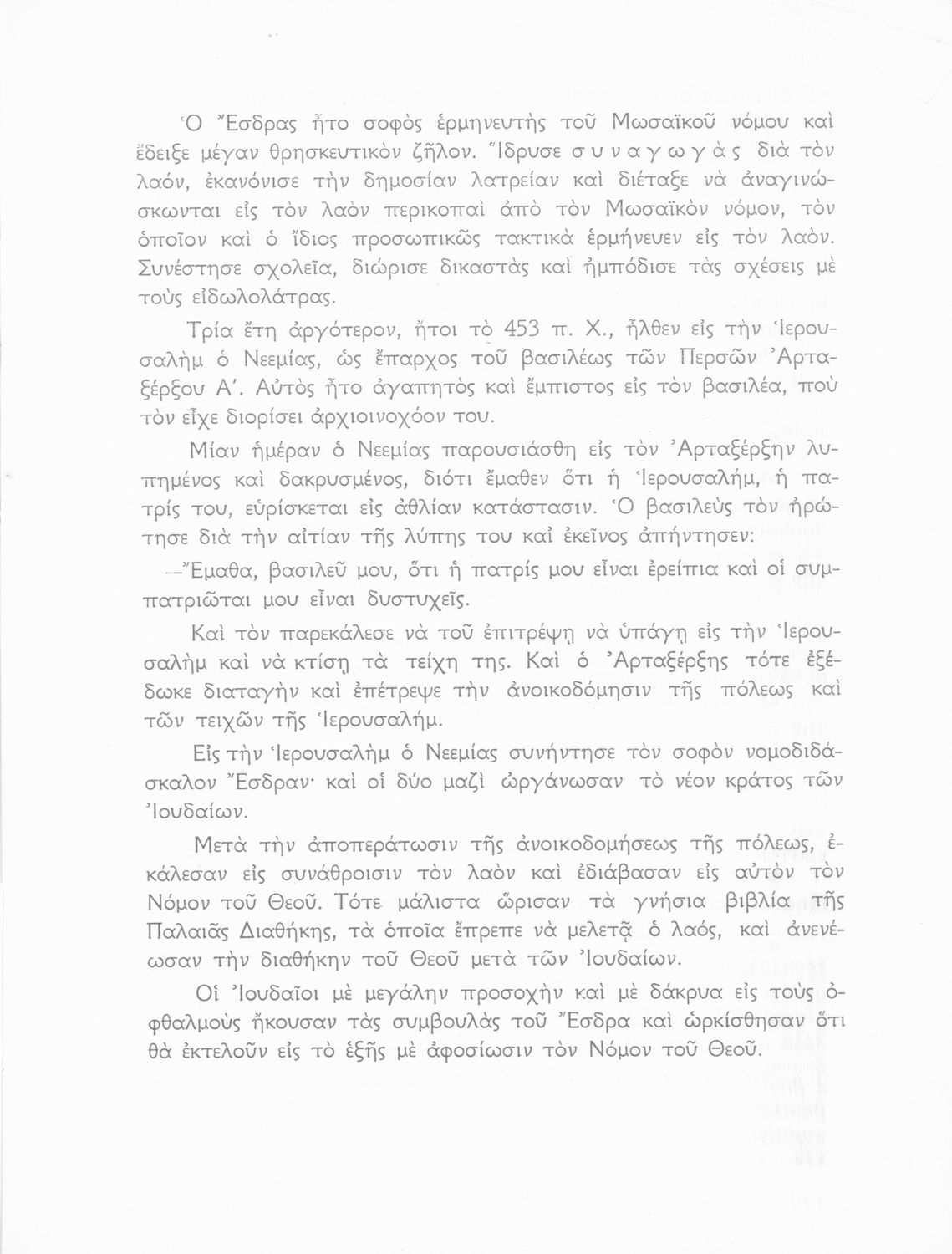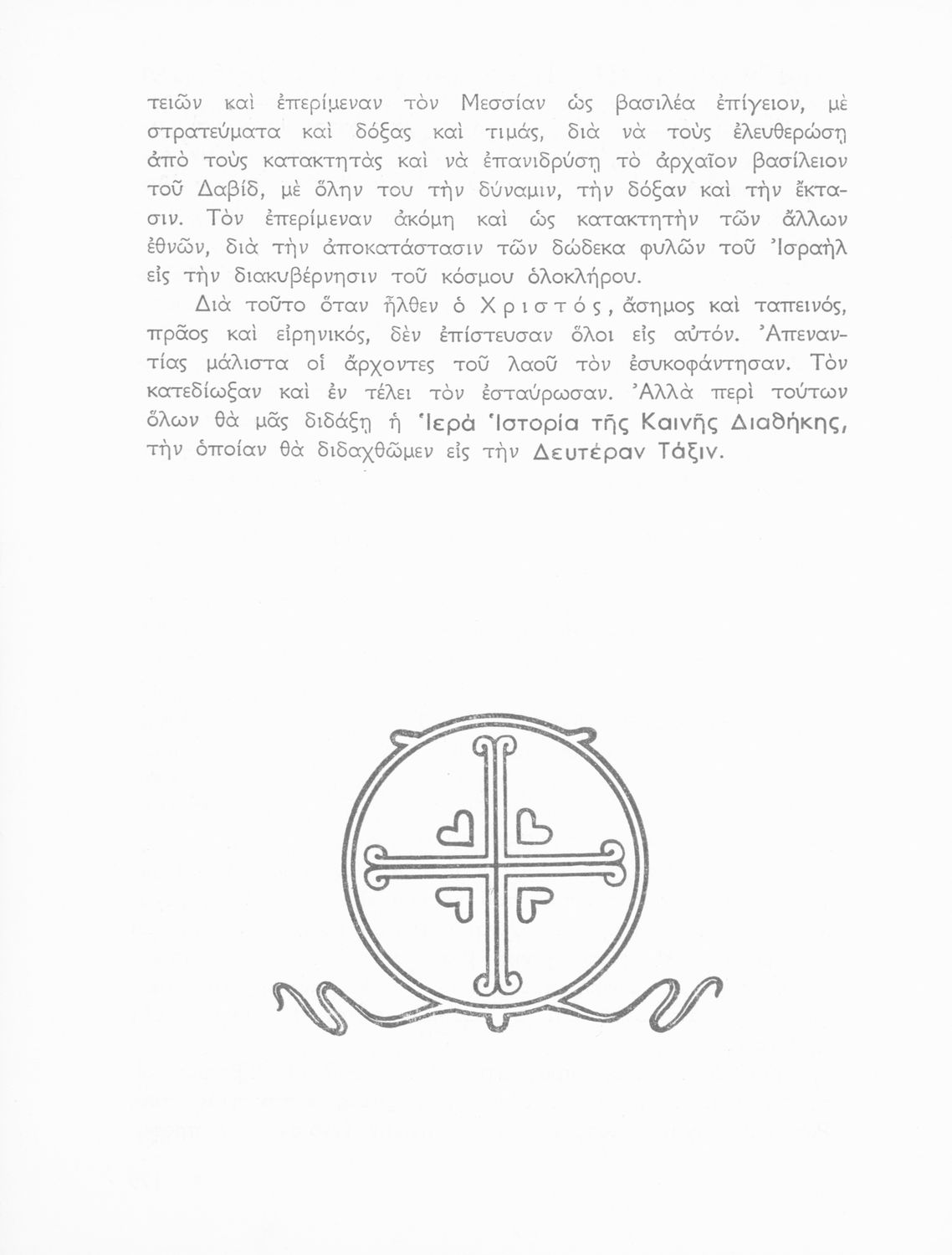 Σχολικό εγχειρίδιο Θρησκευτικών που συνιστά μία εξιστόρηση της Παλαιάς Διαθήκης από τη δημιουργία του κόσμου ως την υποταγή των Εβραίων στους Ρωμαίους.