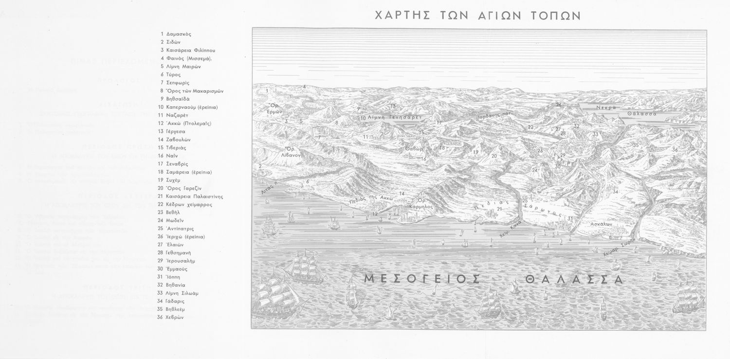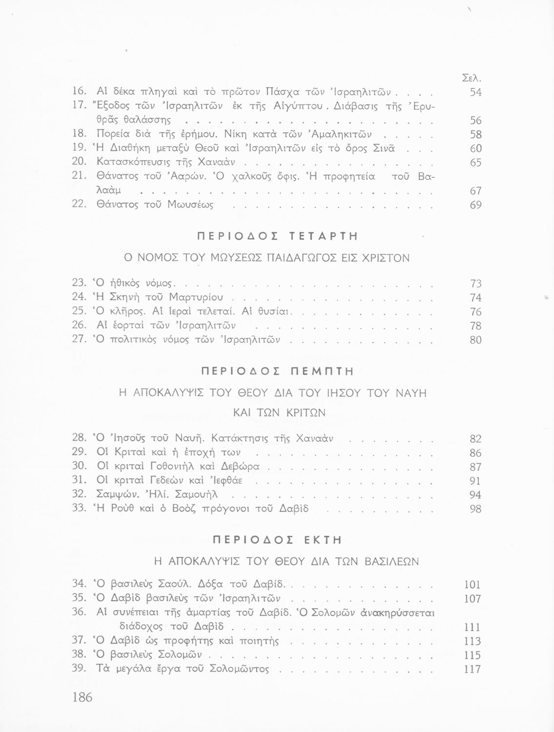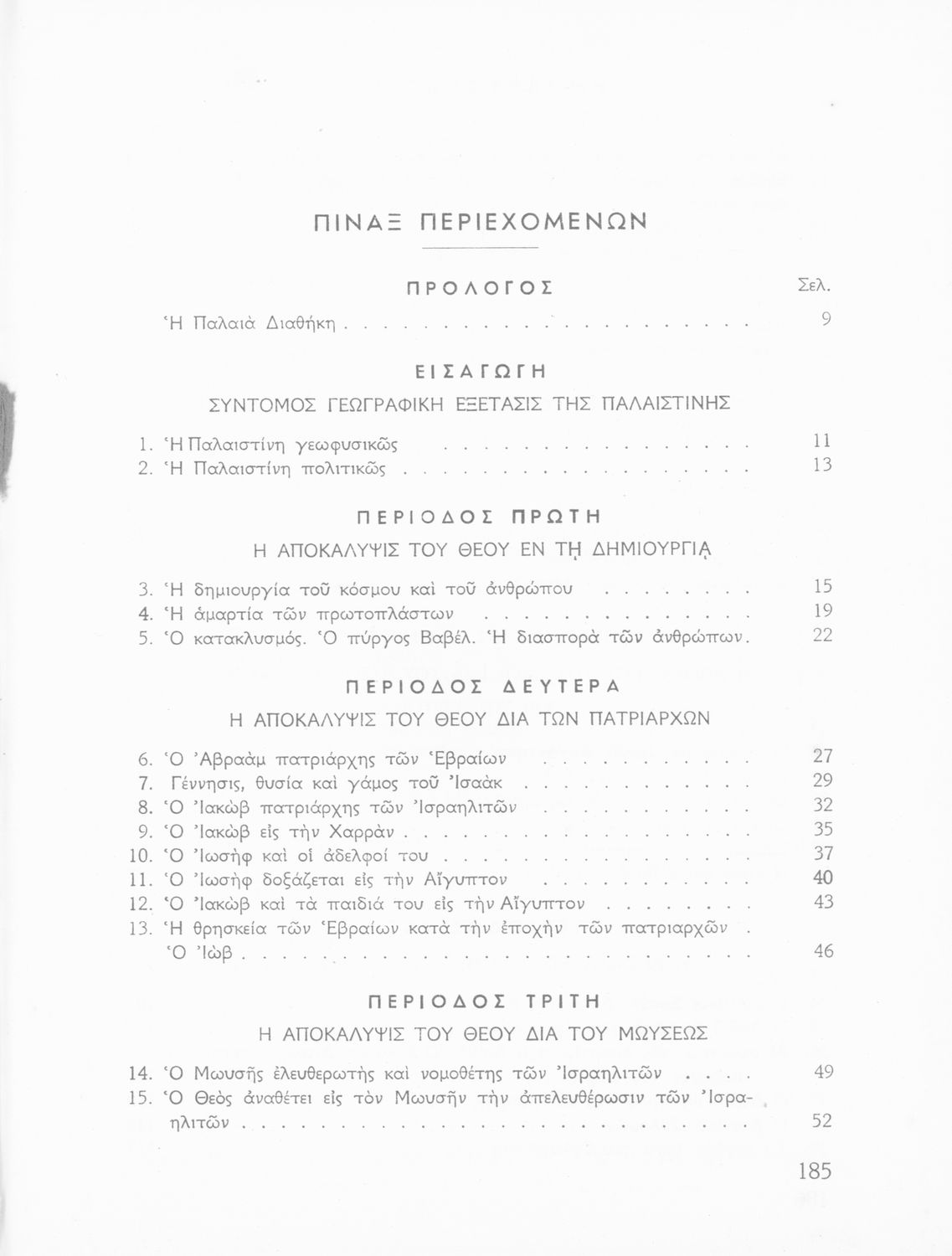 Σχολικό εγχειρίδιο Θρησκευτικών που συνιστά μία εξιστόρηση της Παλαιάς Διαθήκης από τη δημιουργία του κόσμου ως την υποταγή των Εβραίων στους Ρωμαίους. Περιέχει και στοιχεία γεωγραφίας της Παλαιστίνης.