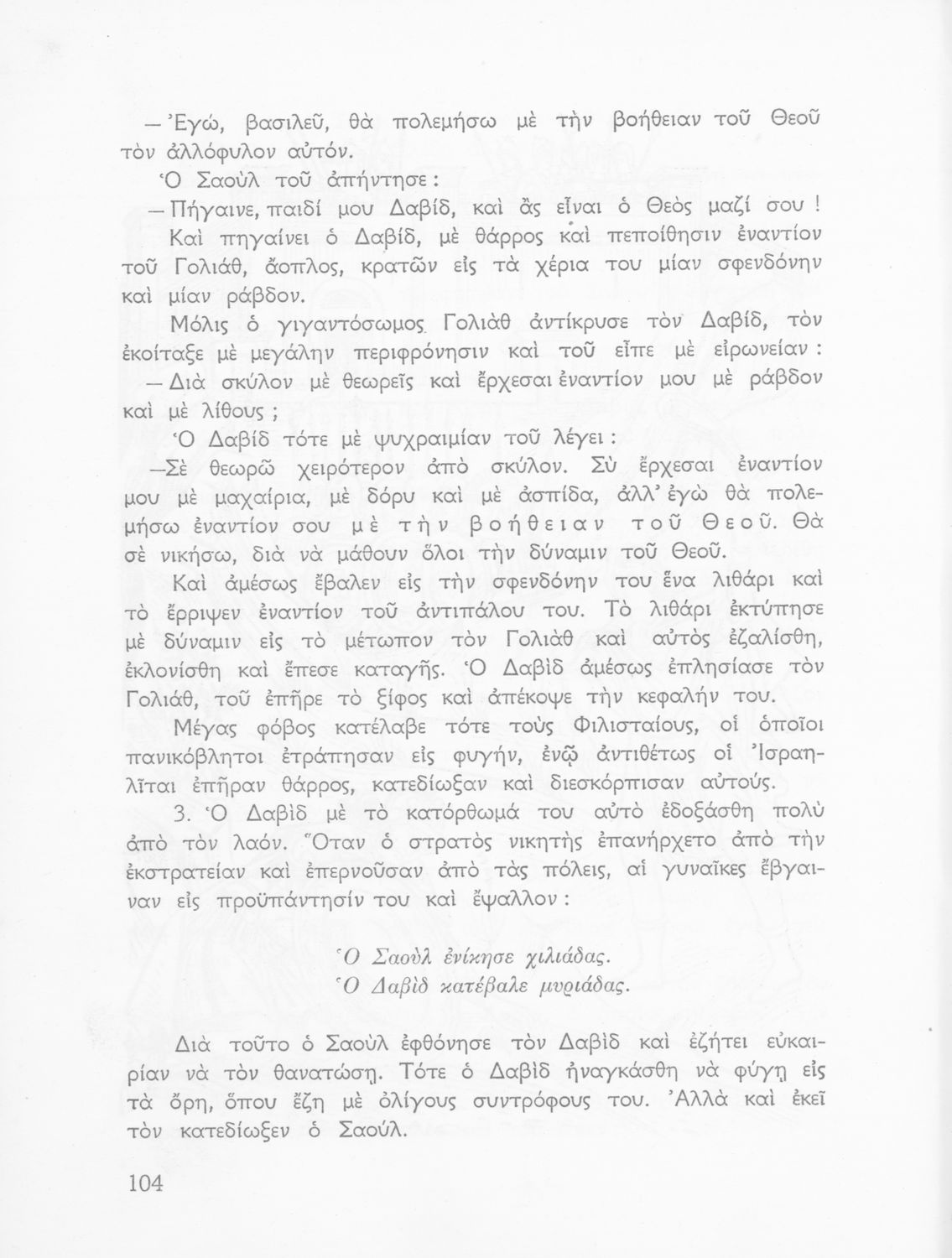 Σχολικό εγχειρίδιο Θρησκευτικών Δημοτικού που συνιστά μία εξιστόρηση της Παλαιάς Διαθήκης από τη δημιουργία του κόσμου ως τους Μακκαβαίους. Περιέχει και ποιήματα θρησκευτικού περιεχομένου.