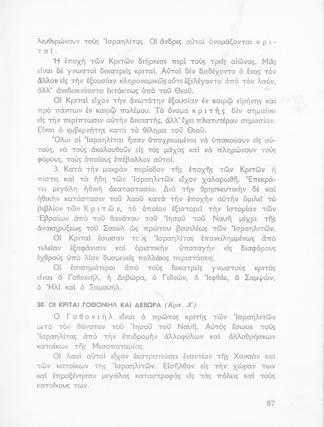 Σχολικό εγχειρίδιο Θρησκευτικών που συνιστά μία εξιστόρηση της Παλαιάς Διαθήκης από τη δημιουργία του κόσμου ως την υποταγή των Εβραίων στους Ρωμαίους.