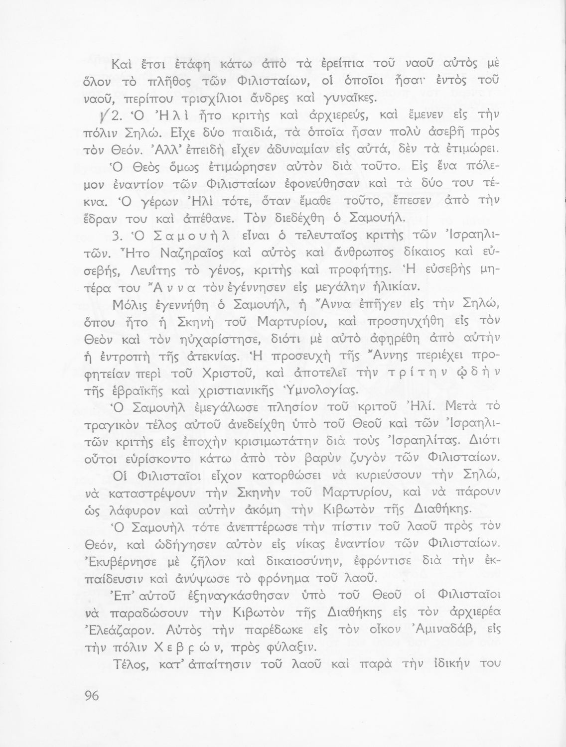 Σχολικό εγχειρίδιο Θρησκευτικών που συνιστά μία εξιστόρηση της Παλαιάς Διαθήκης από τη δημιουργία του κόσμου ως την υποταγή των Εβραίων στους Ρωμαίους. Περιέχει και στοιχεία γεωγραφίας της Παλαιστίνης.