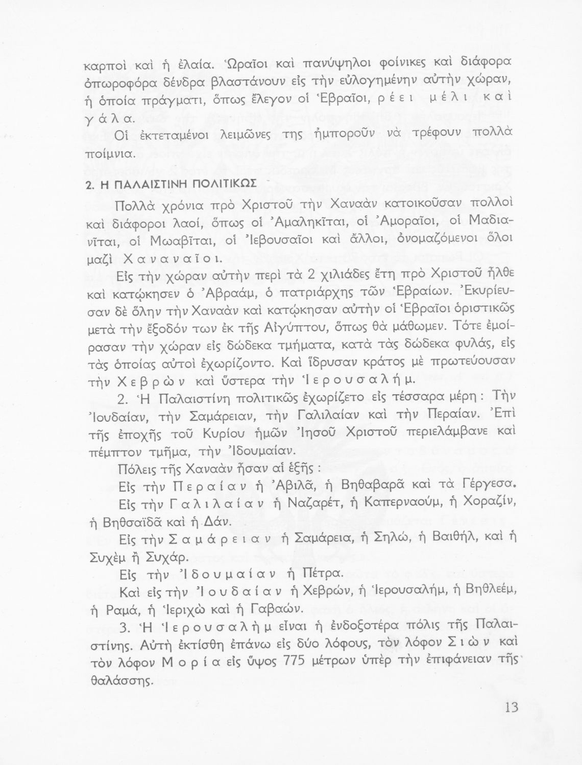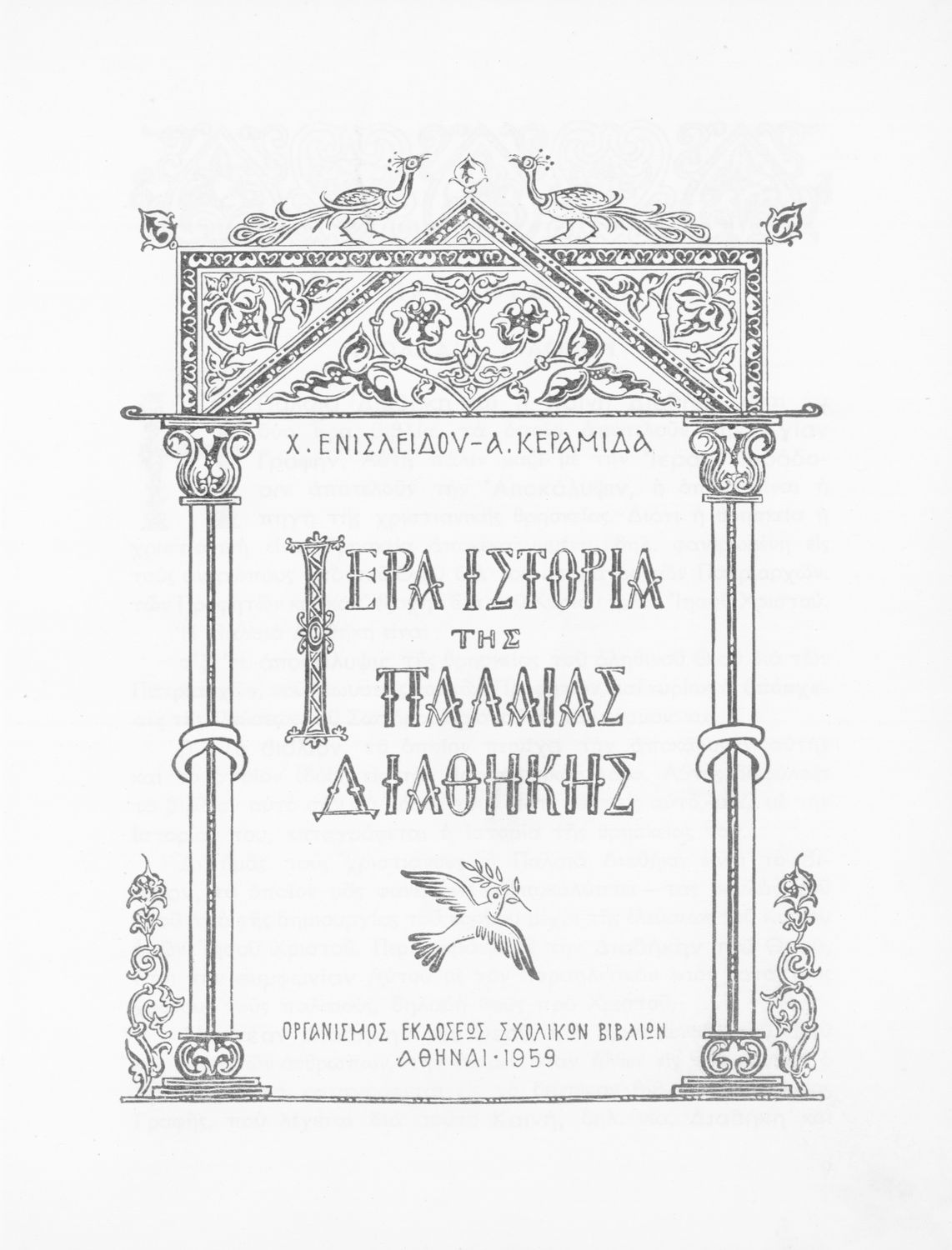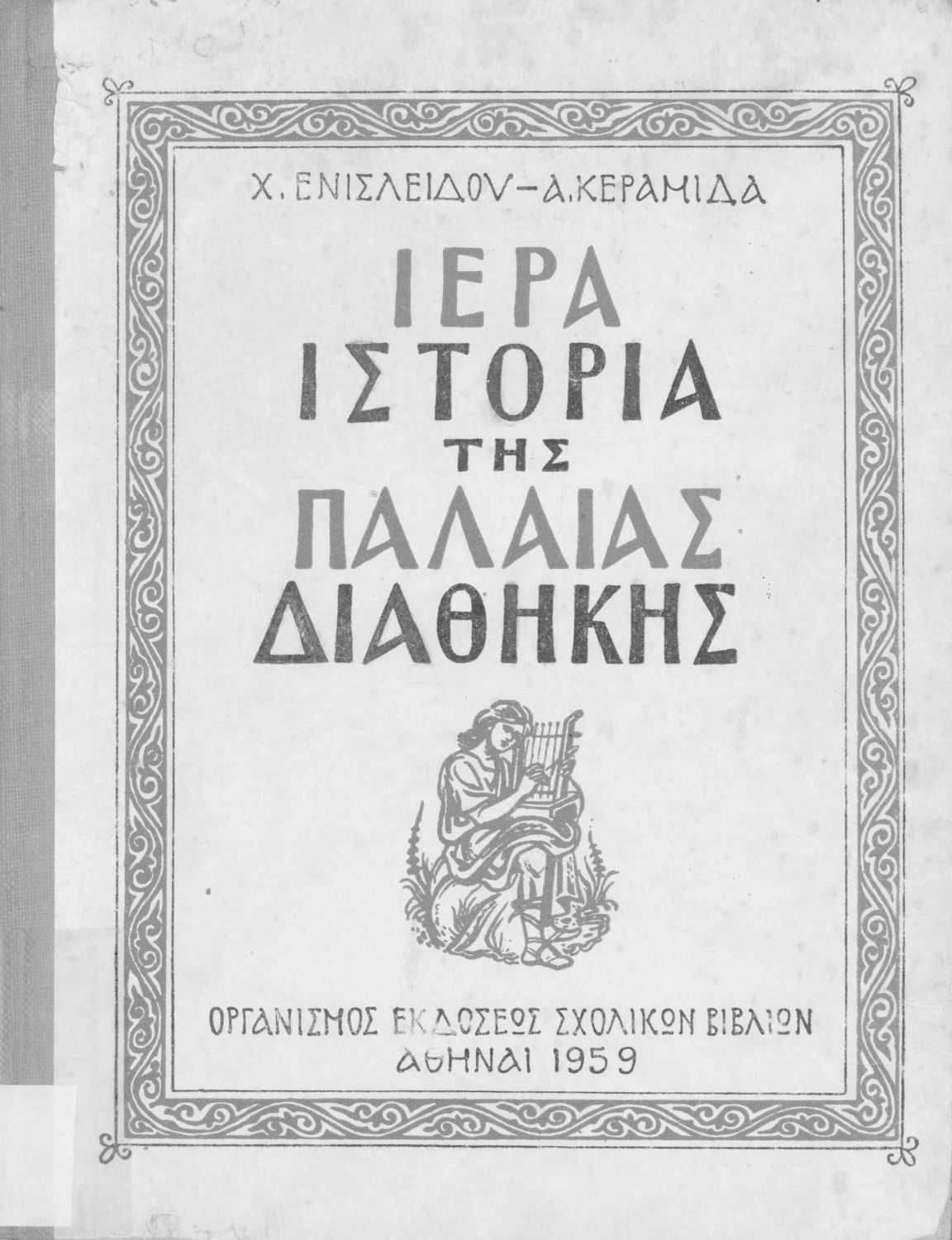 Σχολικό εγχειρίδιο Θρησκευτικών που συνιστά μία εξιστόρηση της Παλαιάς Διαθήκης από τη δημιουργία του κόσμου ως την υποταγή των Εβραίων στους Ρωμαίους. Περιέχει και στοιχεία γεωγραφίας της Παλαιστίνης.