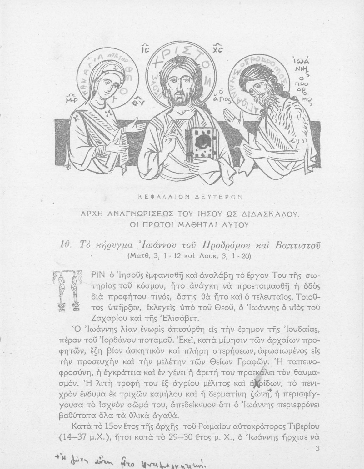 Σχολικό εγχειρίδιο Θρησκευτικών Β΄ Γυμνασίου που συνιστά μία εξιστόρηση της Καινής Διαθήκης από τη γέννηση της Θεοτόκου ως την ανάληψη του Χριστού .