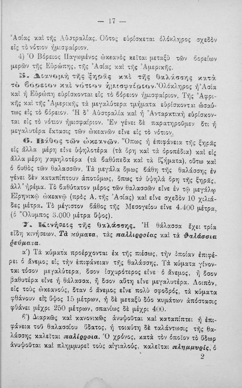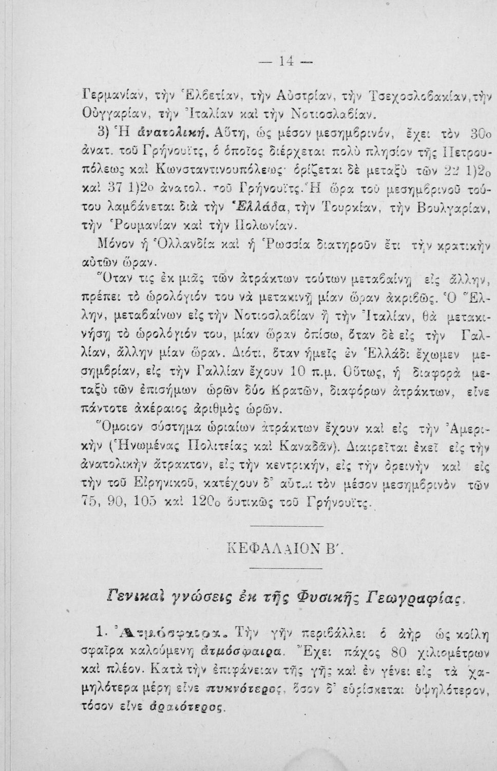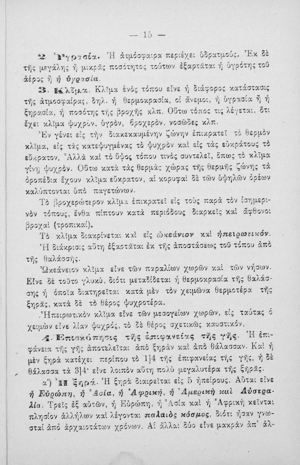 Σχολικό εγχειρίδιο Γεωγραφίας για την Α΄ Εμπορικών Σχολών. Περιλαμβάνει στοιχεία μαθηματικής, αστρονομικής και φυσικής γεωγραφίας. Περιέχει στοιχεία γεωφυσικά και πολιτικά της Ελλάδας και των χωρών της χερσονήσου του Αίμου.