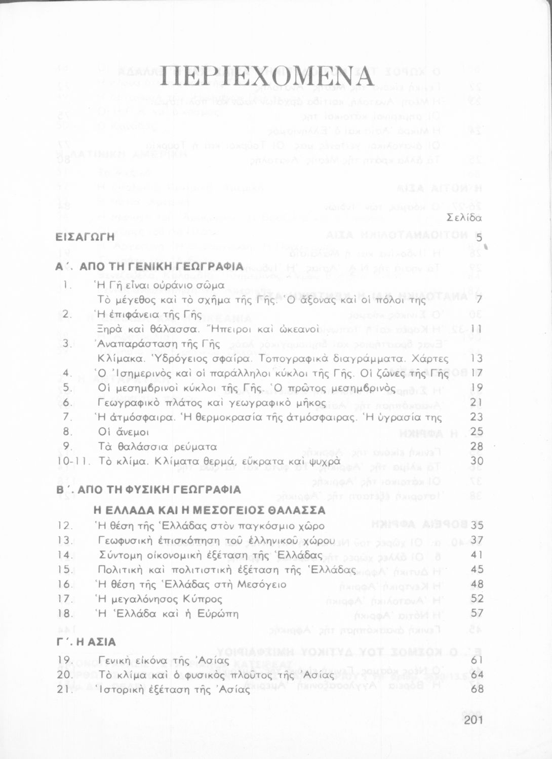 Σχολικό εγχειρίδιο Γεωγραφίας Ε΄ Δημοτικού που περιλαμβάνει εισαγωγή στη φυσική γεωγραφία εξετάζει την Ελλάδα και ενδεικτικές χώρες και περιοχές από τις πέντε ηπείρους, εκτός της Ευρώπης, από γεωφυσική και ...