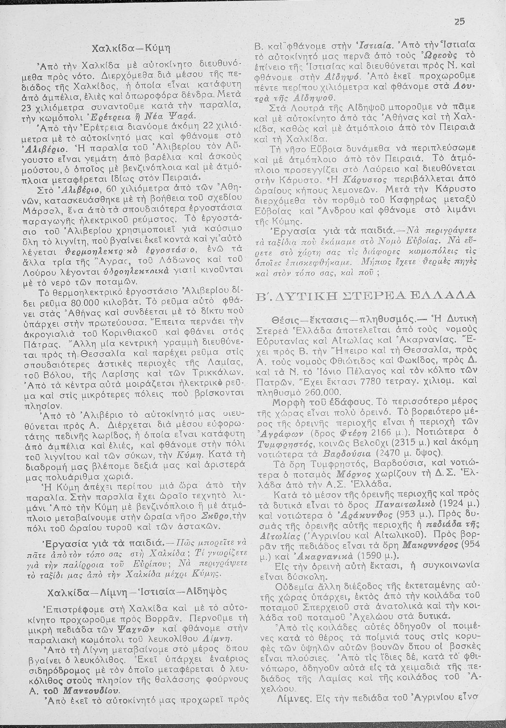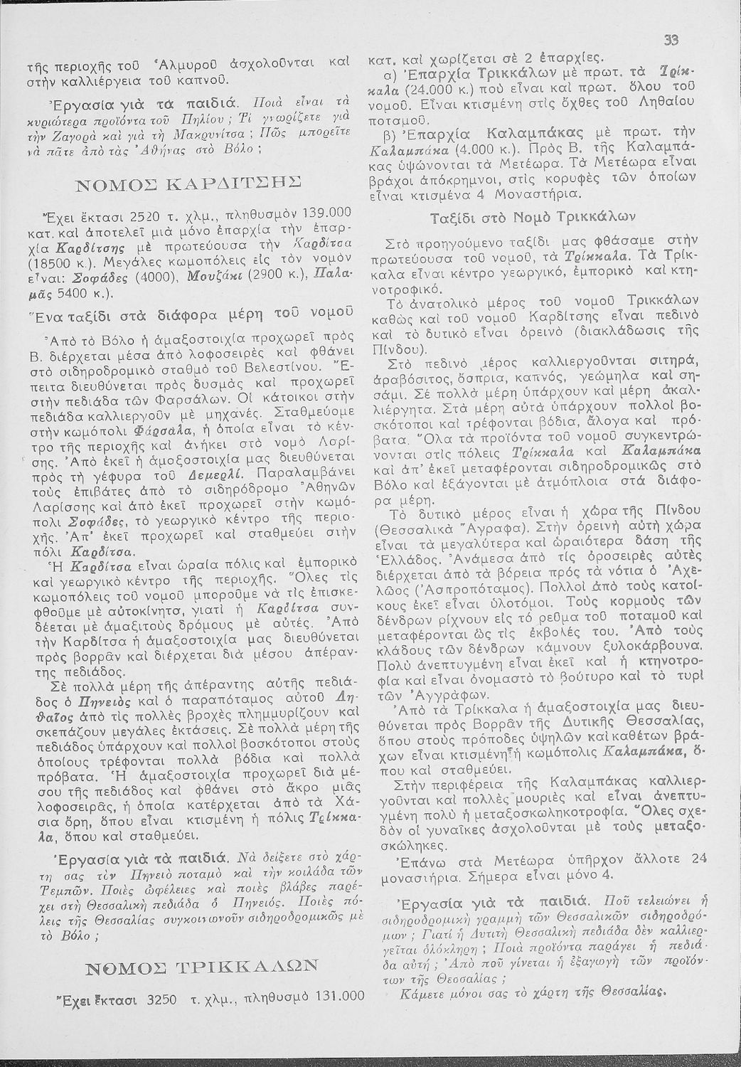 Μαθητικό βοήθημα Γεωγραφίας Γ΄, Δ΄ Δημοτικού που αποτελεί μια γενική επισκόπηση της Ελλάδας ανά διαμέρισμα και νομό από γεωμορφολογική, πολιτική και οικονομική σκοπιά. Περιέχει και ταξιδιωτικές οδηγίες.