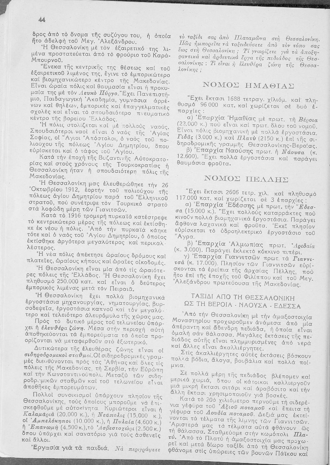 Μαθητικό βοήθημα Γεωγραφίας Γ΄, Δ΄ Δημοτικού που αποτελεί μια γενική επισκόπηση της Ελλάδας ανά διαμέρισμα και νομό από γεωμορφολογική, πολιτική και οικονομική σκοπιά. Περιέχει και ταξιδιωτικές οδηγίες.