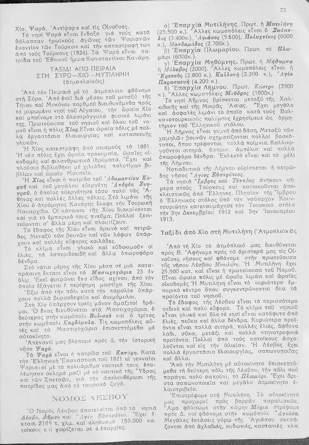 Μαθητικό βοήθημα Γεωγραφίας Γ΄, Δ΄ Δημοτικού που αποτελεί μια γενική επισκόπηση της Ελλάδας ανά διαμέρισμα και νομό από γεωμορφολογική, πολιτική και οικονομική σκοπιά. Περιέχει και ταξιδιωτικές οδηγίες.