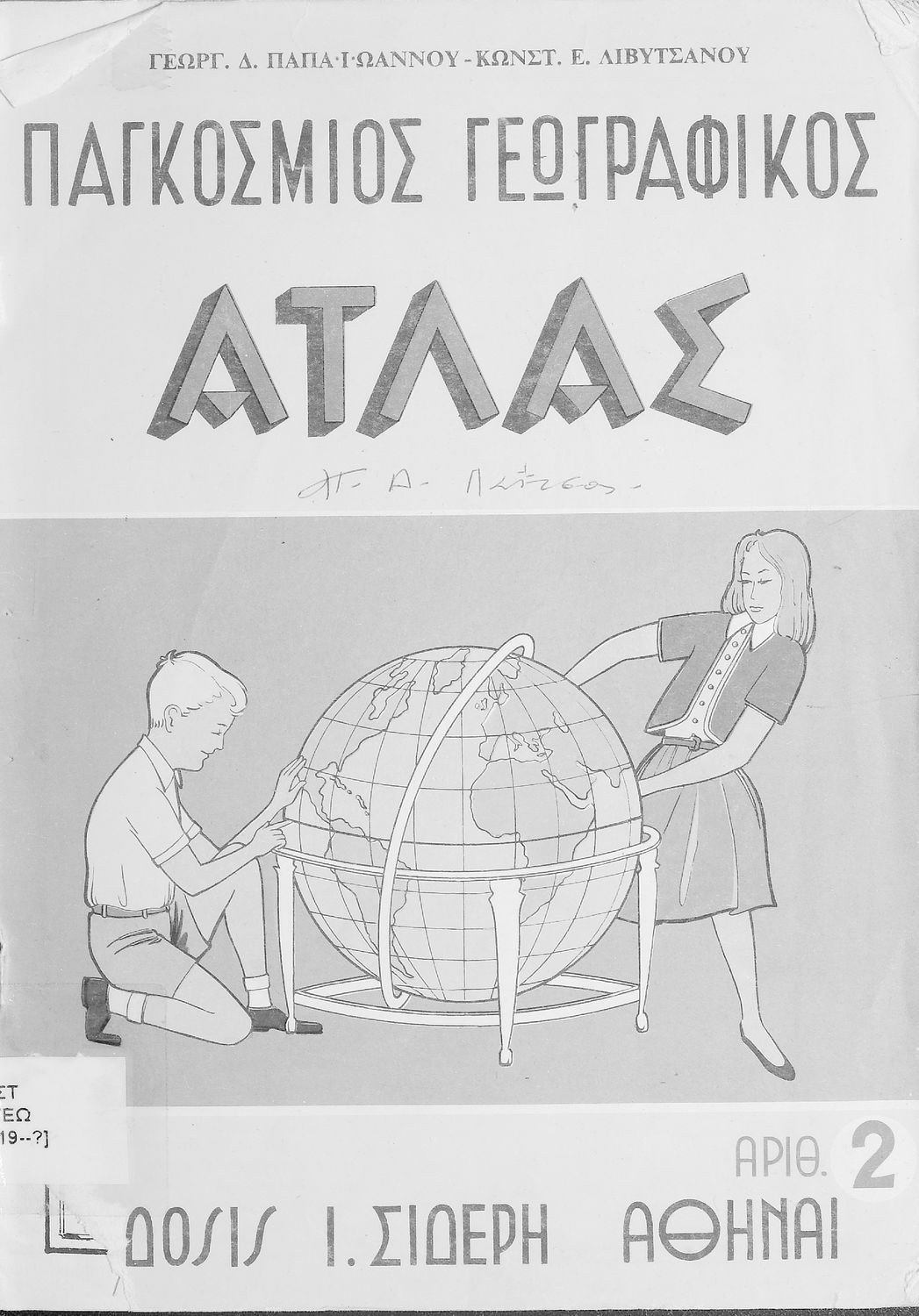 Παρουσίαση περιεχομένου: Πρόκειται για άτλαντα της Ελλάδας και των ηπείρων με χάρτες γεωφυσικούς,πολιτικούς, ιστορικούς, παραγωγικούς, τουριστικούς, συγκοινωνιακούς, θρησκευτικούς. Περιέχει στατιστικά στοιχεία της απογραφής του 1961.