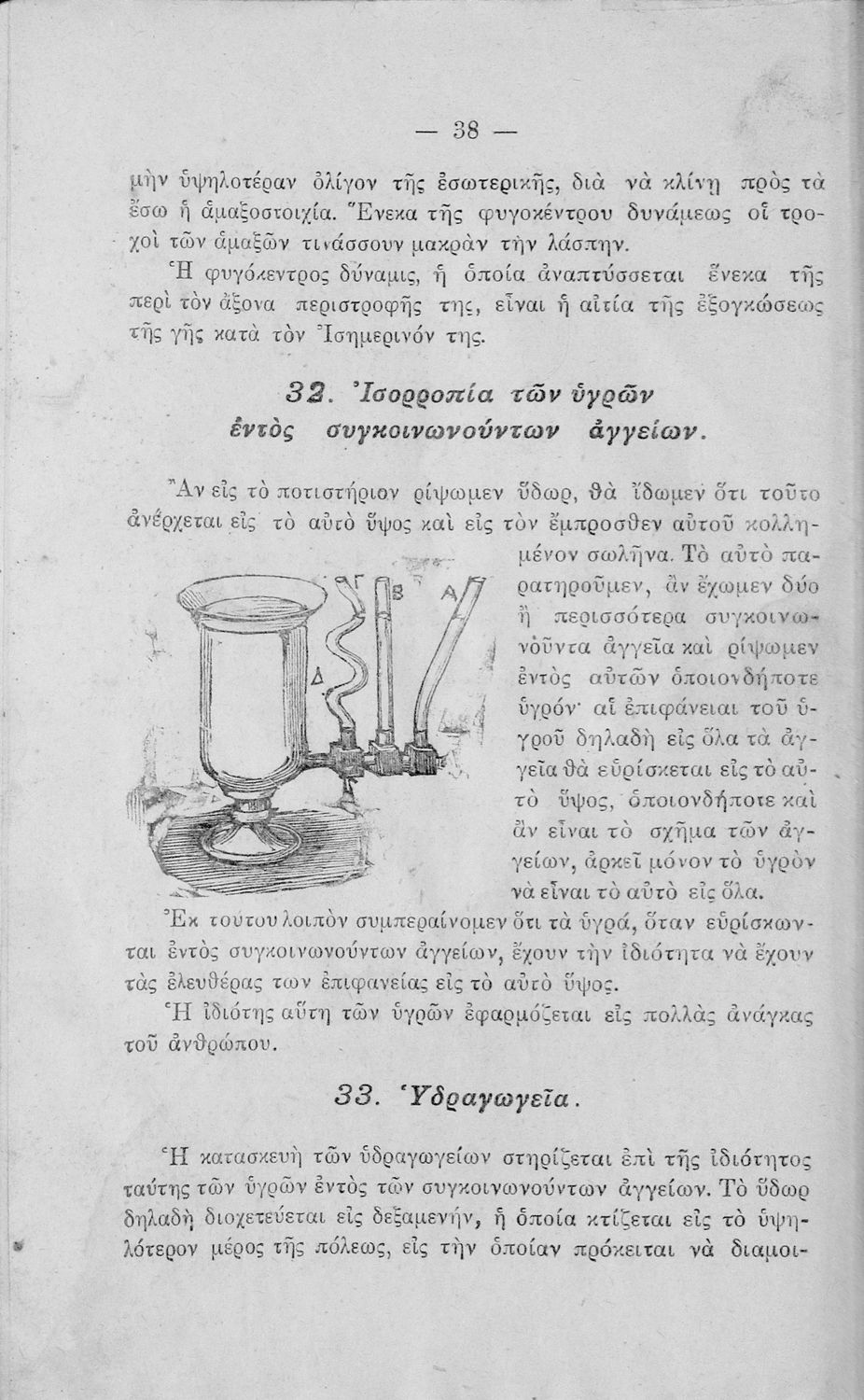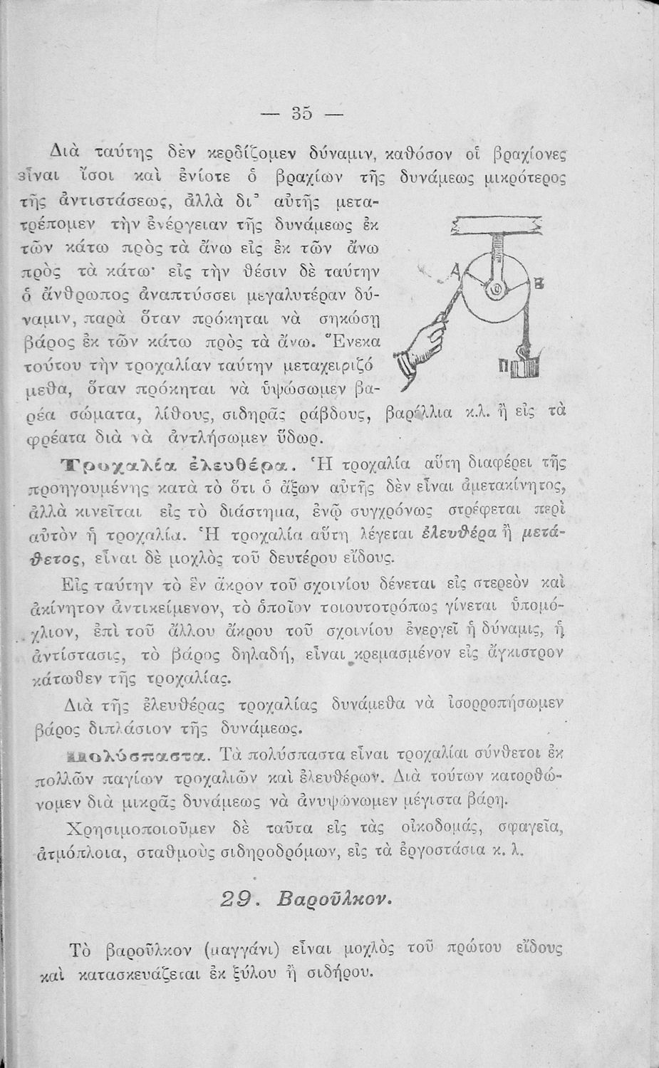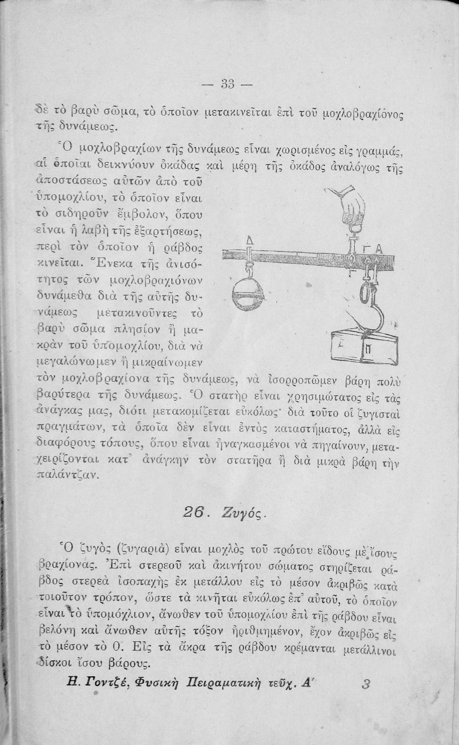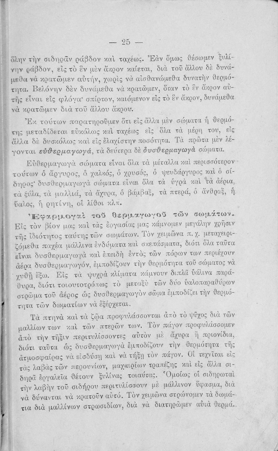 Σχολικό εγχειρίδιο για τις ανώτερες Τάξεις του Δημοτικού για το μάθημα της Φυσικής. Παρέχει βασικές γνώσεις της φυσικής επιστήμης και της χημείας. Αναλύει τις ιδιότητες των σωμάτων, καθώς και της θερμότητας, του ηλεκτρισμού και του μαγνητισμού, την υδροστατική, την βαρύτητα και την αεροστατική. Αναφέρει πολλά από τα όργανα, που χρησιμοποιούνται στη φυσική, καθώς και τις πρακτικές εφαρμογές της επιστήμης στην καθημερινότητα. Περιέχει εικόνες και σχεδιαγράμματα τα οποία βοηθούν τη διδασκαλία.