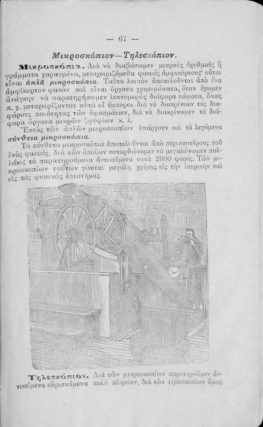 Σχολικό εγχειρίδιο για τις ανώτερες Τάξεις του Δημοτικού για το μάθημα της Φυσικής. Παρέχει βασικές γνώσεις της φυσικής επιστήμης και της χημείας. Αναλύει τις ιδιότητες των σωμάτων, καθώς και της θερμότητας, του ηλεκτρισμού και του μαγνητισμού, την υδροστατική, την βαρύτητα και την αεροστατική. Αναφέρει πολλά από τα όργανα, που χρησιμοποιούνται στη φυσική, καθώς και τις πρακτικές εφαρμογές της επιστήμης στην καθημερινότητα. Περιέχει εικόνες και σχεδιαγράμματα τα οποία βοηθούν τη διδασκαλία.